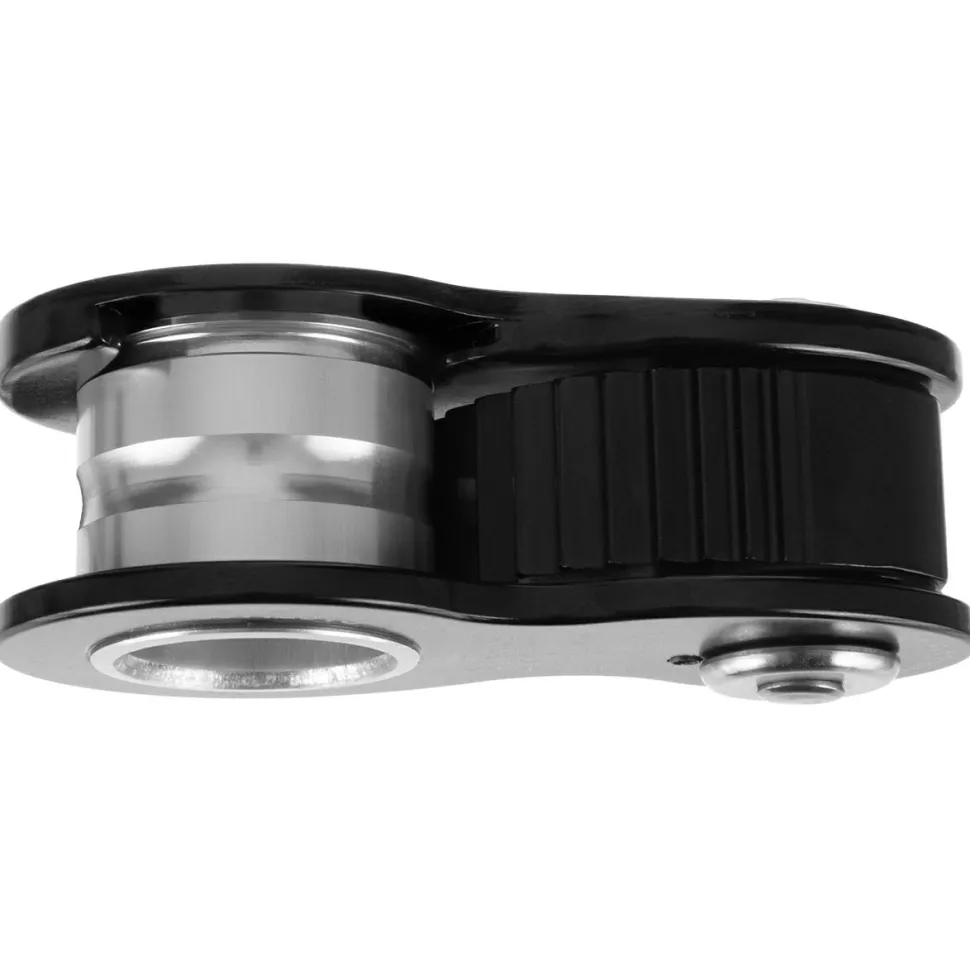 Der neue geriffelte Verschlussmechanismus verhindert das seitliche Öffnen der Seitenplatten beim Aufsteigen am Seil und stellt sicher, dass sich kein Seil zwischen der Seitenplatte und den Klemmen befindet.