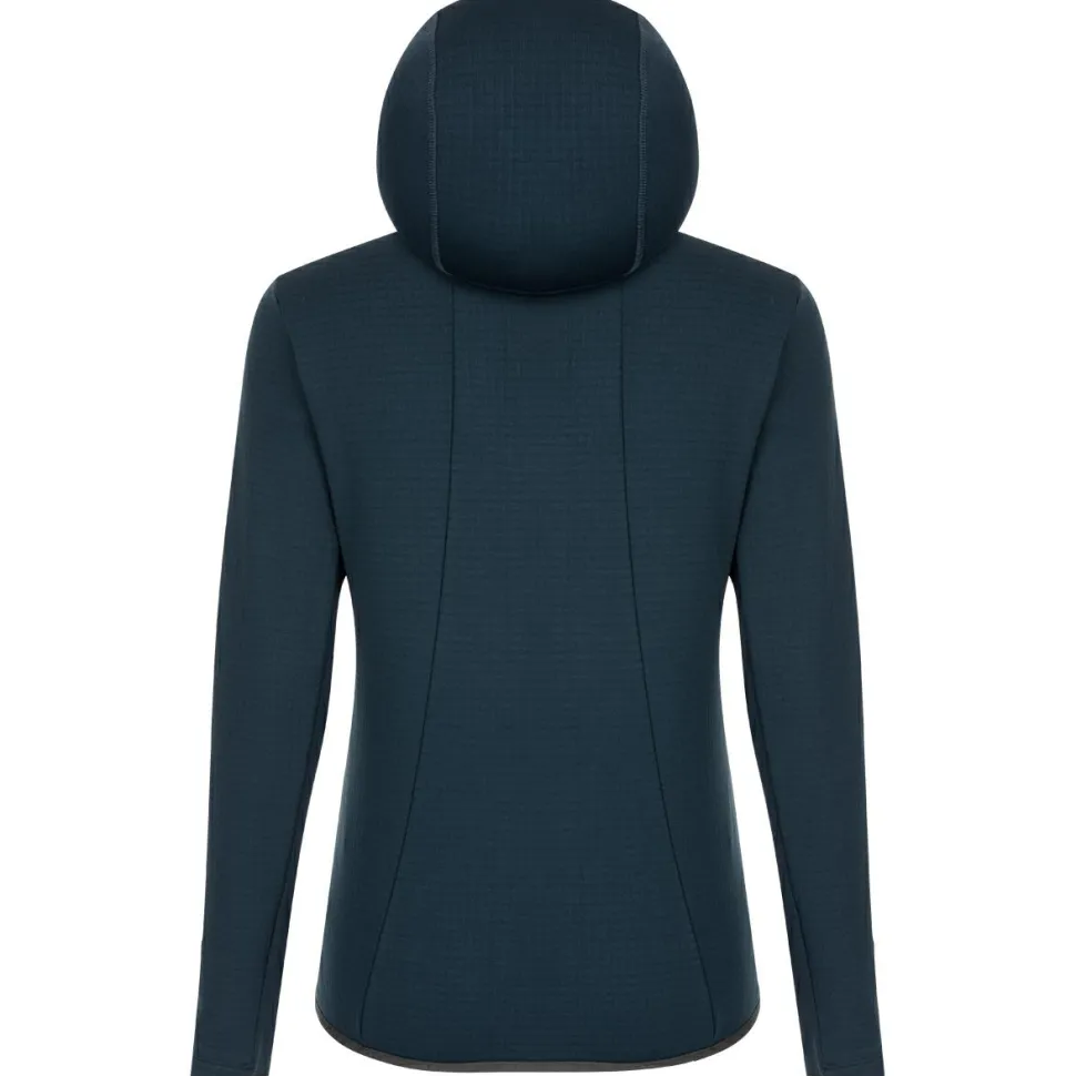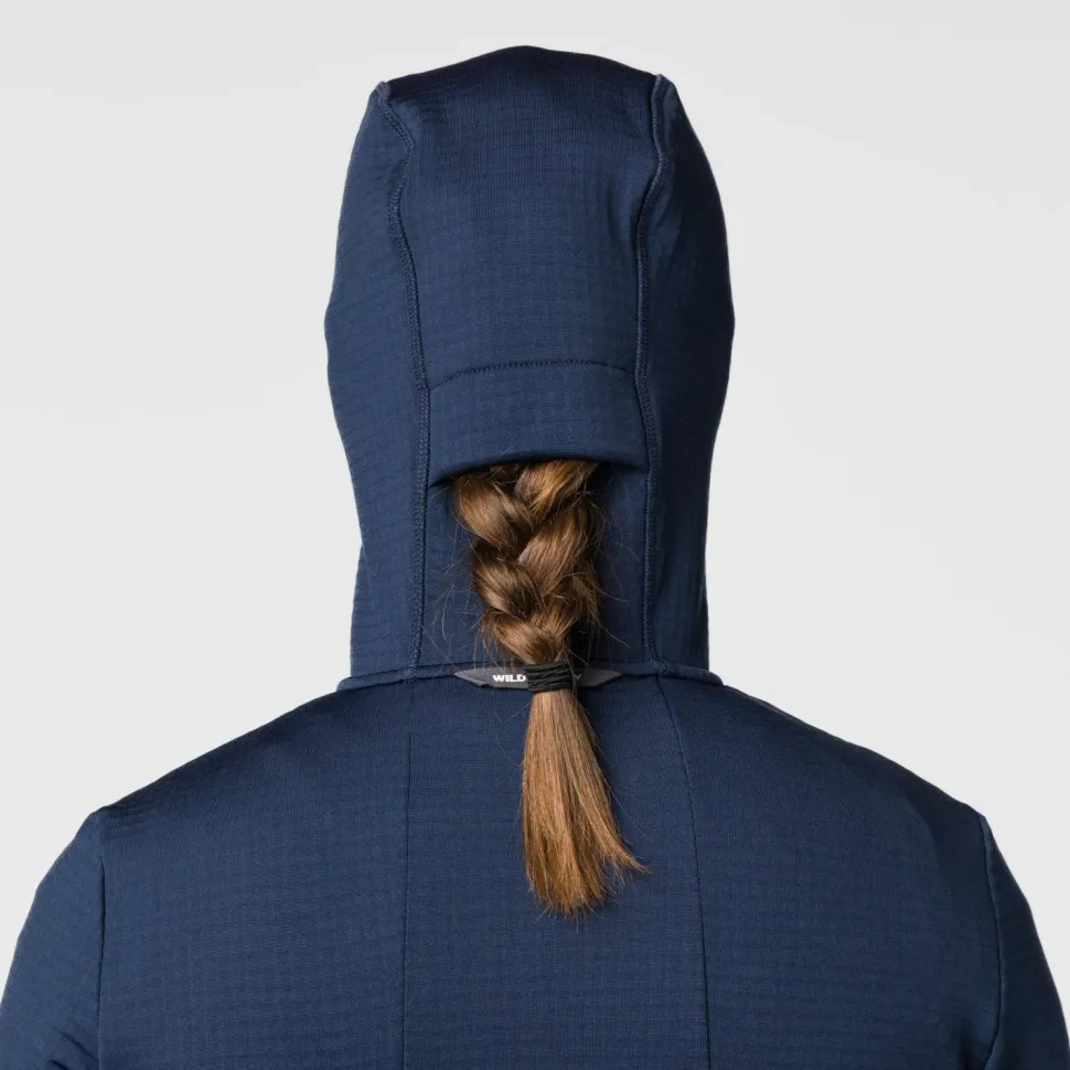 Außerdem ist sie kompakt genug, um sie bis zum nächsten Gebrauch im Kletterrucksack kompakt zu verstauen. Mit femininem, gut sitzendem Schnitt und kuscheliger Unterhelmkapuze mit Pferdeschwanz-Öffnung ist für hohen Tragekomfort gesorgt. Die weichen und elastischen Abschlüsse an Ärmelenden, Kapuze und Saum sorgen dafür, dass die Kapuzenjacke unter einem Klettergurt oder beim Tragen eines Rucksacks nicht verrutscht. Die drei Reißverschlusstaschen sind alle in den Saumnähten versteckt: eine an jeder Seite und eine in der Brustpartie.