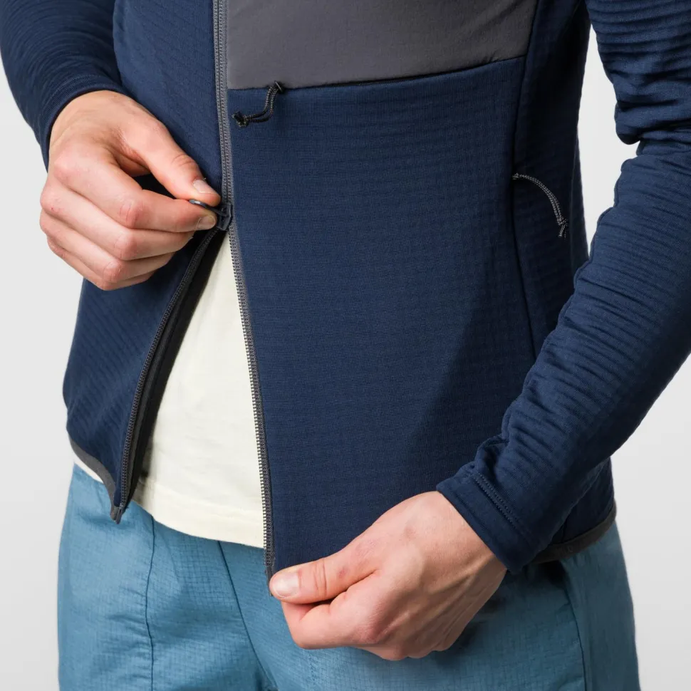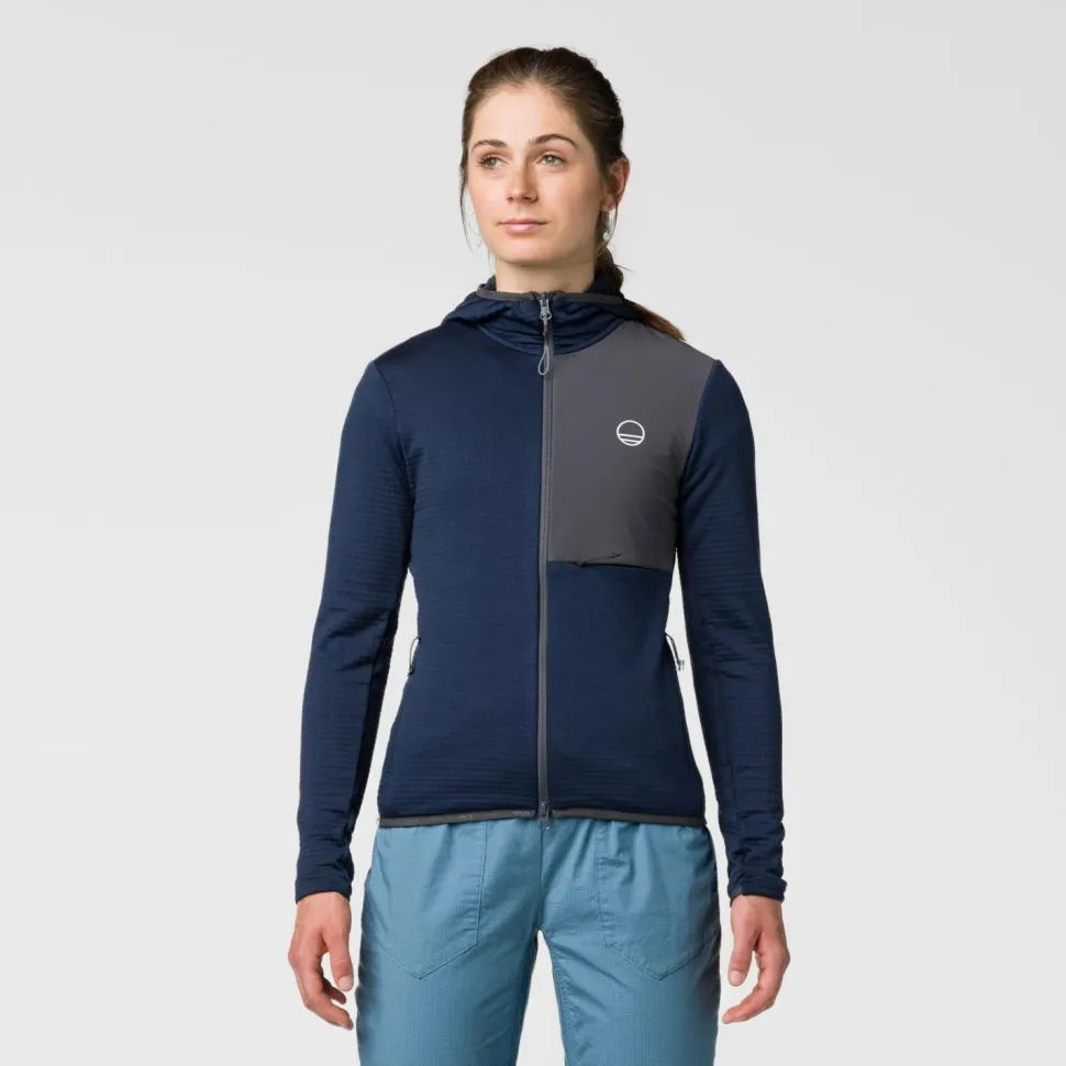 Diese leichte, besonders bequeme und warme Wildcountry Funktions-Kapuzenjacke Women’s Session Pro Hoody aus recyceltem Polyesterfleece mit Elastan sorgt für volle Bewegungsfreiheit beim Klettern. Da die Fleecejacke als ständiger Begleiter gedacht ist, spielt das Gewicht eine entscheidende Rolle. Die Konstruktion sorgt für ein angenehmes Tragegefühl und leichtes Gewicht. Sie ist die perfekte schnell trocknende, feuchtigkeitsableitende Zwischenlage für einen ganzen Tag am Fels oder für eine Kletterrunde an kühlen Sommerabenden.