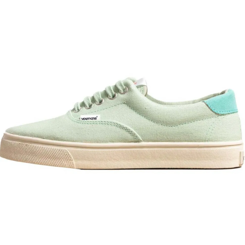 Die knöchelhohen Clearwater Sneaker von Youmans sind super nachhaltig. Die Schuhsohle besteht aus recyceltem Gummi und gibt Dir immer den richtigen Grip. Aus recyceltem Schaumstoff besteht die Einlegesohle, die dafür sorgt, dass Du einen tollen Tragekomfort und einen sanften Tritt genießen kannst. Auch das Obermaterial besteht aus recycelter Baumwolle. So tragen sich die Sneaker doch gleich doppelt so gut, wenn damit sogar noch Ressourcen geschont werden. Innenfutter und Schnürsenkel sind hier aus Bio-Baumwolle und die Ösen sind außerdem chrom- und nickelfrei.