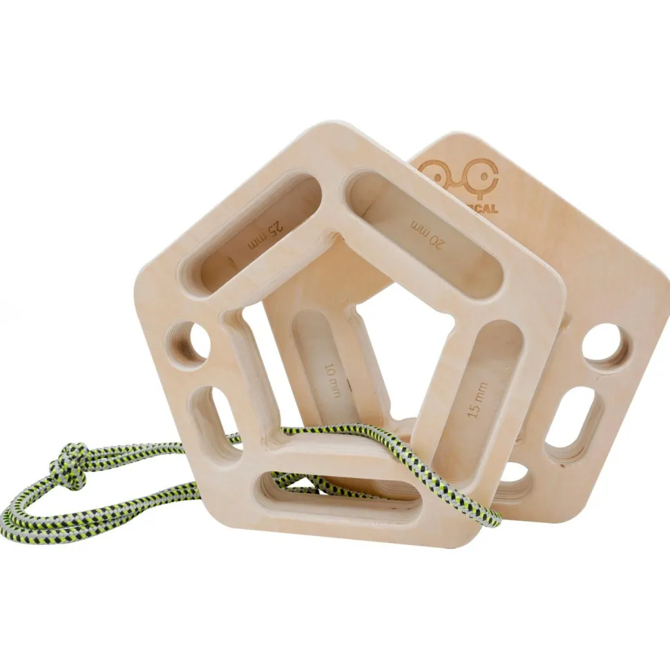 Die Penta von YY Vertical sind hocheffiziente Trainingstools für ambitionierte Kletterer! Das Gerätepaar ermöglicht ein sehr variables und progressives Training durch sein drehbares 360° Design mit sieben Griffmöglichkeiten (30 mm, 25 mm, 20 mm, 15 mm, 10 mm, Mono, Duo). Das Material aus laminierter Birke und Pappel zeichnet sich durch besondere Leichtigkeit und Stabilität aus. Die weiche Oberfläche garantiert einen guten Grip, der dich überzeugen wird!