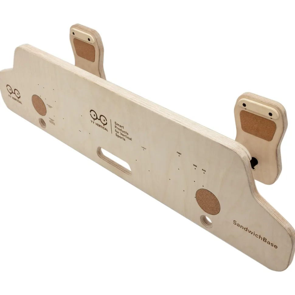 Die Sandwichbase von YY Vertical ist die clevere Halterung, um einen Trainingsbalken zu installieren, ohne die Wände zu durchbohren. Das Holz-Stahl-System nutzt den Bogen aus: Einmal in Deinen Türrahmen geklemmt, ist der Halt stabil und sicher, auch bei dynamischen Klimmzügen.