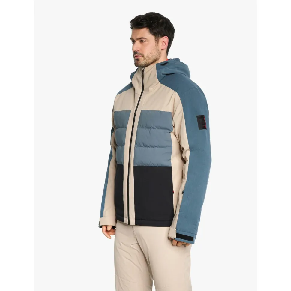 Die coole Skijacke ist mit einer praktischen Skipasstasche, elastischen Ärmelinnenbündchen sowie einer festen, verstellbaren Kapuze ausgestattet. So bleibt auch bei widrigen Wetterbedingungen alles geschützt und an seinem Platz – vom Körper bis zur Liftkarte.