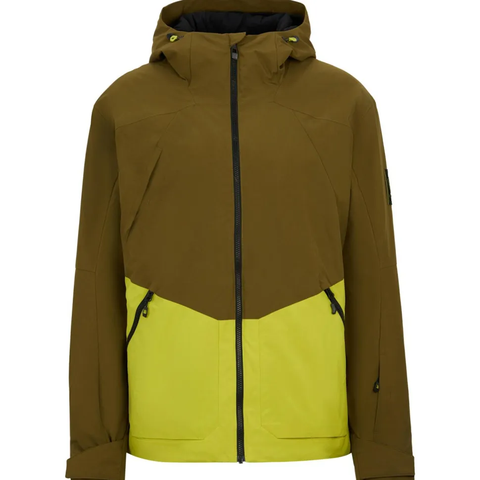 Gefertigt aus strapazierfähigem wasser- und winddichten Material mit wärmender Wattierung, sorgt die Jacke für effektive Isolierung an kalten Tagen. Das elastische Innenfutter unterstützt die Bewegungsfreiheit – besonders wichtig bei sportlichen Aktivitäten im Schnee. Dank der festen, verstellbaren Funktionskapuze ist der Kopfbereich bei Wind und Wetter bestens geschützt. Eine Brusttasche mit Reißverschluss bietet zusätzlichen Stauraum für wichtige Kleinigkeiten, während die integrierte Skipasstasche schnellen Zugriff am Lift ermöglicht. Die elastischen Ärmelinnenbündchen verhindern das Eindringen von Kälte und sorgen für einen guten Sitz.