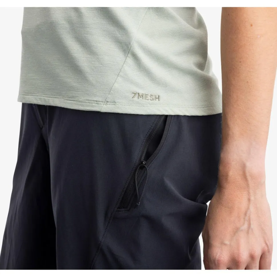 Du bist auf der Suche nach einer verlässlichen und robusten Radhose für alle Deine Bike-Abenteuer? Dann ist die Women’s Transition Short 13 von 7Mesh ein perfektes Match. Die hochwertigen Fasern sind bereit für harte Arbeit. Wenn schweißtreibende Bedingungen an der Tagesordnung sind, sorgen sie dafür, dass Du angenehm trocken und wohl zirkuliert am Ziel ankommst. Wenn Feuchtigkeit von außen auftritt, werden leichte Regenschauer oder auch spritzender Schlamm an einem Eindringen gehindert, denn die Materialien sind wasserabweisend.