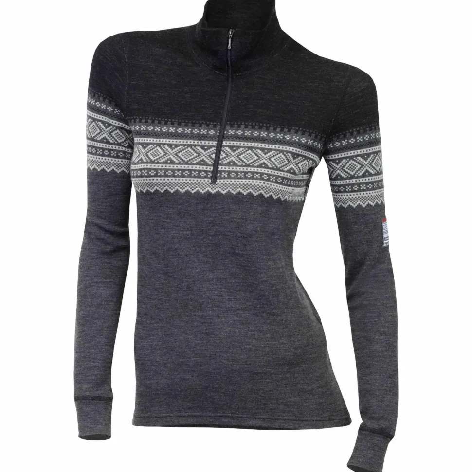 Klassisches Design trifft Merinowolle, fertig ist der Designwool Marius Mockneck Woman Merinopullover von Aclima! Das schicke Marius Design gibt es schon seit 1953 und ist so norwegisch wie Skifahren im Telemarkstil. So überzeugt der Pullover zum einen optisch sehr, aber auch das weiche Merinomaterial weiß zu gefallen. Es trägt sich überaus angenehm, ist geruchshemmend und temperaturregulierend – sprich ideal für alle Aktivitäten in der kühleren Jahreszeit.Der Pullover verfügt zudem über einen hohen Kragen samt Reißverschluss, so ist man flexibel und kann bei Bedarf für etwas Abkühlung oder zusätzlichen Halsschutz sorgen. Breite Bündchen sorgen für einen guten Sitz und Flachnähte runden das positive Bild perfekt ab. Was will man mehr? Der Designwool Marius Mockneck Woman Merinopullover von Aclima überzeugt auf ganzer Linie!