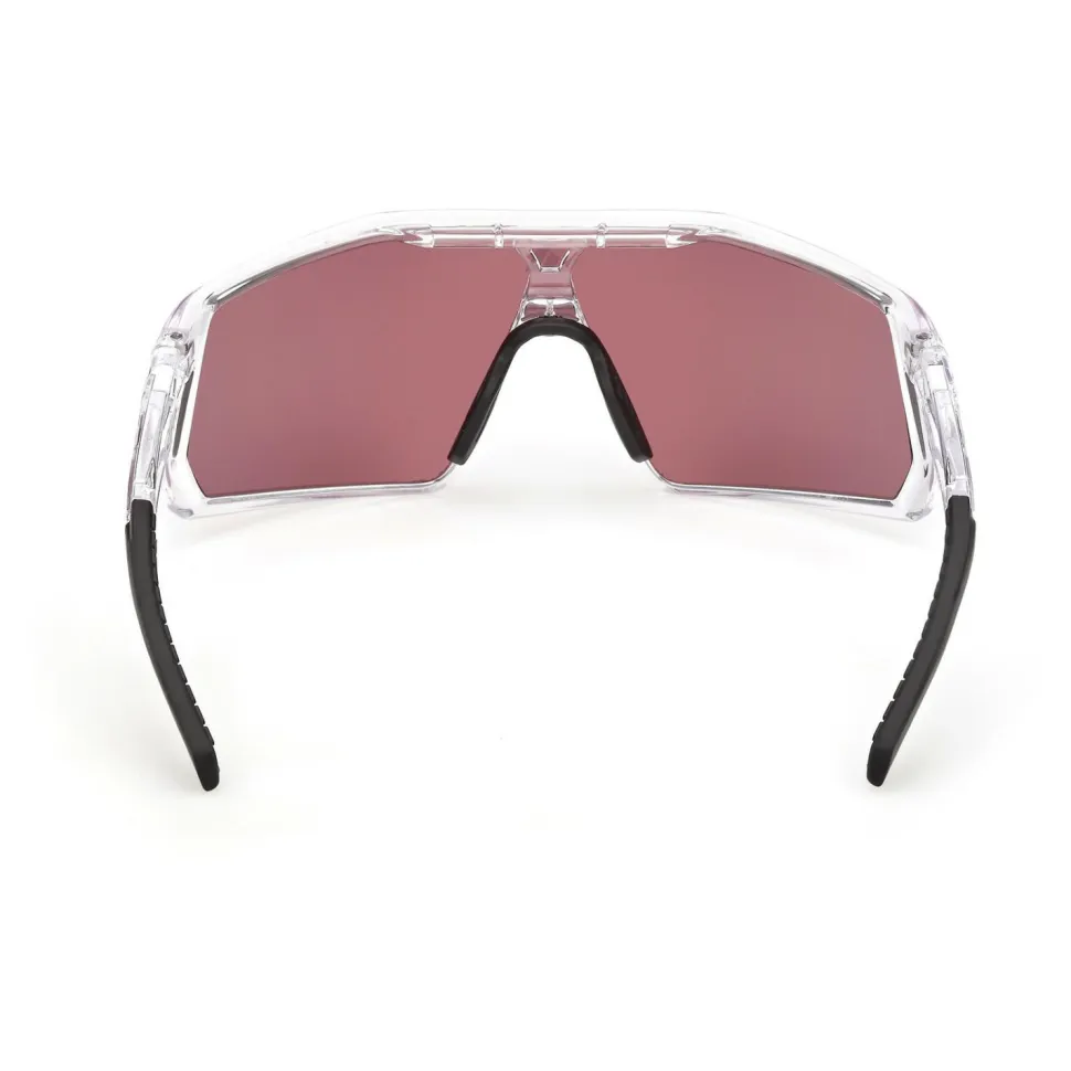Die Kentro Mirror S3 Laufbrille von adidas eyewear schützt zuverlässig vor UV-Strahlung und ist mit Schutzkategorie 3 dunkel getönt. Außerdem ergänzt eine Verspiegelung die durchgehende Brillenscheibe mit dem umlaufenden Rand. Die Brillenscheibe ist ausgesprochen kontraststark und bietet ein weites Sichtfeld beim Running und Trailrunning. Der leichte Rahmen mit flexiblen Bügeln in 125 mm Länge machen die Laufbrille komplett.