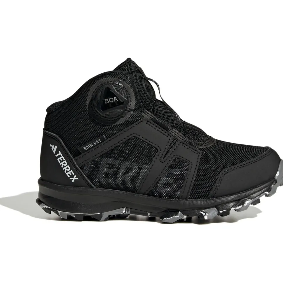 Mit dem Kid’s Terrex BOA Mid Rain Ready von adidas geht es auch bei schönem Wetter und bei Schmuddelwetter über Stock und Stein, Wald und Wiese oder hoch auf den Berg.