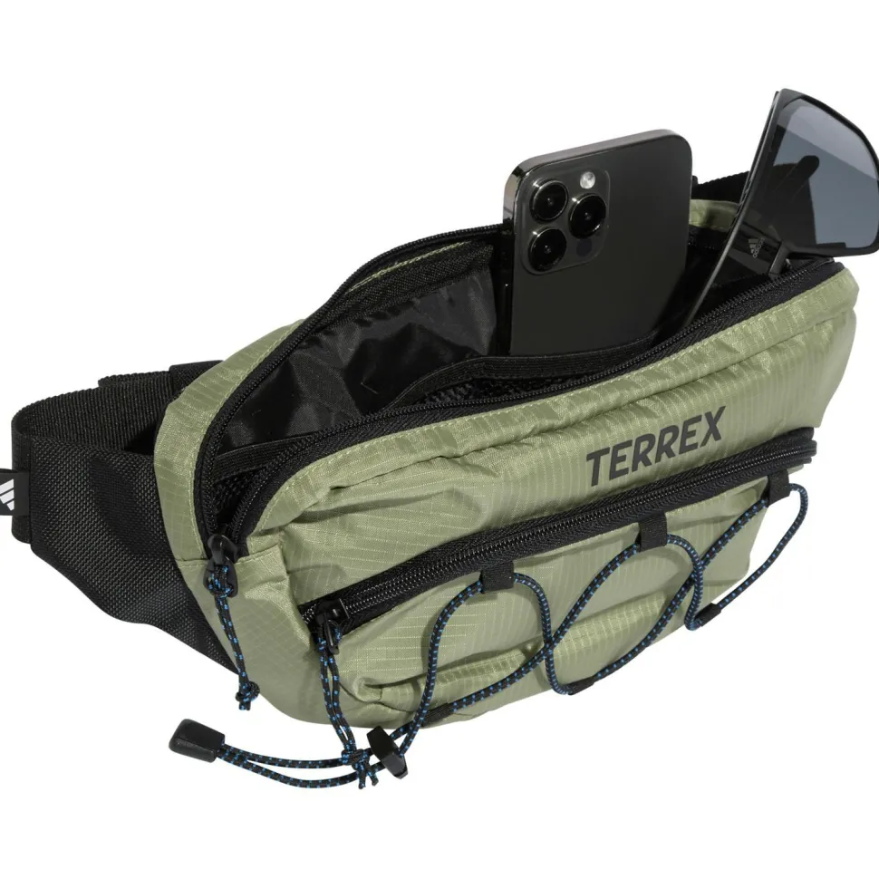 Mit der adidas Terrex MT Waist Pack hast Du Deine Essentials im Alltag immer griffbereit: Das wasserabweisende Polyester schützt zuverlässig, während Dein Schlüssel & Co. in den extra Fächern und der RV-Fronttasche sicher verstaut sind. Der komfortable Hüftgurt sorgt dafür, dass alles angenehm sitzt – egal ob auf dem Weg ins Büro oder beim Spaziergang durch die Stadt. adidas Terrex steht für funktionales Design mit sportlichem Flair und bringt den unverkennbaren Outdoor-Style in Deinen urbanen Alltag!