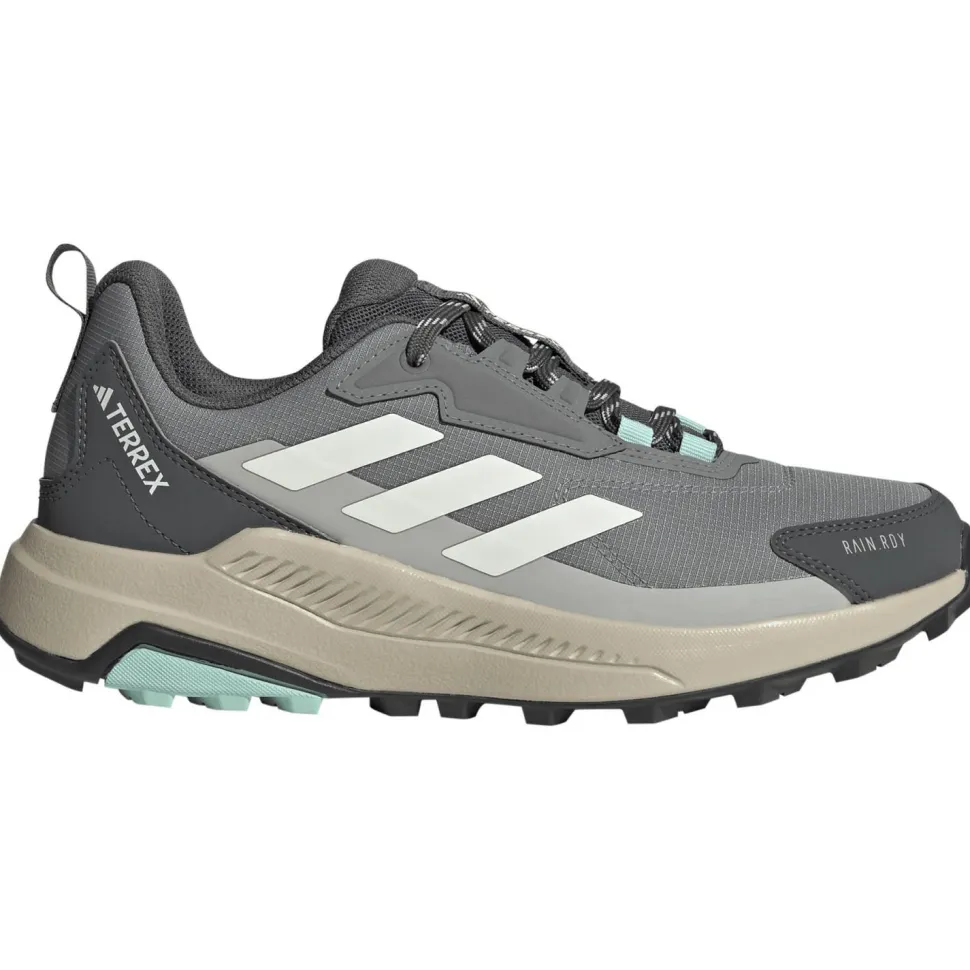 Der Women’s Anylander Rain.Rdy von adidas Terrex ist Dein Begleiter, wenn Du beim Wandern Wert auf trockene und komfortable Füße legst. Die RAIN.RDY-Technologie kombiniert Wasserdichtigkeit mit Atmungsaktivität, sodass Du auch bei plötzlichem Regen entspannt weiterlaufen kannst. Die verstärkte Fußspitze schützt vor Geröll und Wurzeln – praktisch, wenn der Weg mal rauer wird. adidas Terrex steht für Qualität, die sich draußen bewährt.