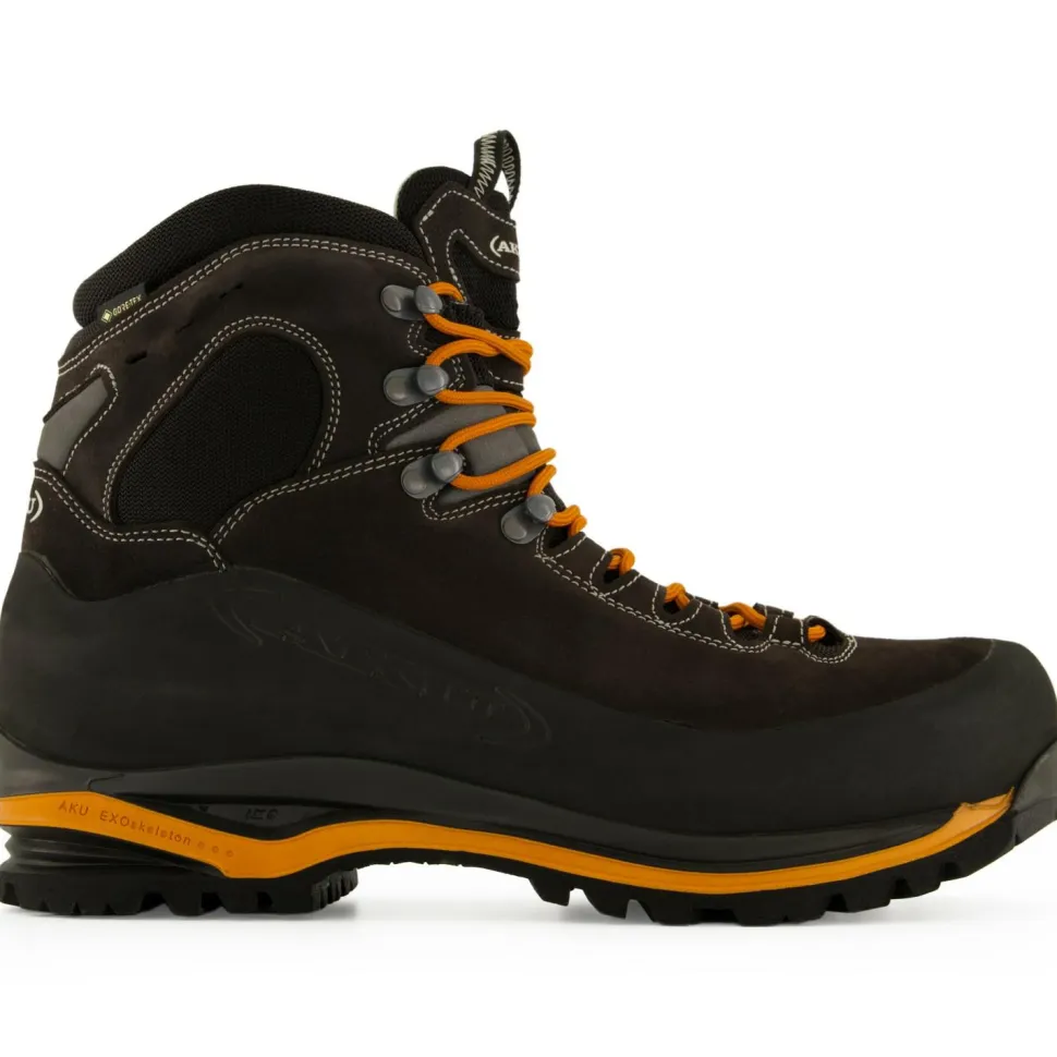 Nicht nur in den Alpen zuhause – der Superalp GTX von AKU! Der hochwertige, sehr stabile Bergschuh ist mit der bewährten GORE-TEX Membran ausgestattet, die Feuchtigkeit nach außen leitet und gleichzeitig verhindert, dass welche von außen eindringen kann. So bleiben die Füße trocken und das Klima im Schuh angenehm. Das Außenmaterial ist mit Gummi verstärkt, das Abrieb vorbeugt und den Schuh langlebig macht. Der anatomisch geformte Schaft umschmiegt den Fuß und sorgt so für eine ideale Passform.Für optimale Traktion, Stabilität und Halt auf jedem Untergrund sorgt die Vibram Sohle mit ihren großen, allseitig ausgerichteten Stollen. Die Mittelsohle wurde nach der Exoskeleton Technologie entwickelt, die ihr Robustheit und Leichtigkeit verleiht und den Fuß vor Ermüdungsverletzungen schützt. Zudem dämpft das doppelt gearbeitete PU jeden Stoß angenehm ab und garantiert so für noch mehr Tragekomfort. Dank seiner Stabilität ist der Superalp GTX von AKU besonders für mehrtägige Touren mit schwerem Rucksack geeignet. Aber auch auf dem Klettersteig oder beim Bergwandern macht er eine super Figur!