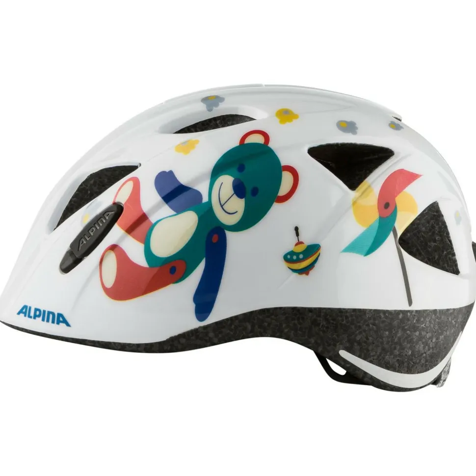Der Kid’s Ximo von Alpina ist ein hübscher Fahrradhelm, der den großen Vorteil hat, dass ihn die Kinder aufgrund seiner Optik gerne tragen! Er wurde im klassischen In-Mold-Verfahren hergestellt – also mit einer Polycarbonat-Außenschale und einer EPS-Innenschale. Der größte Vorteil dabei: Der Helm ist schön leicht, ohne an Sicherheit und Komfort einzubüßen. Dank Edge Protect veredelt eine zusätzliche Polycarbonatplatte den In-Mold-Helm. Diese Platte deckt Kanten an der Unterseite des Helms ab. Für eine bessere Langlebigkeit. Auch die Ceramic Shell Technologie sorgt dafür, dass der Helm bruch- und kratzfest, UV-stabil sowie antistatisch ist.