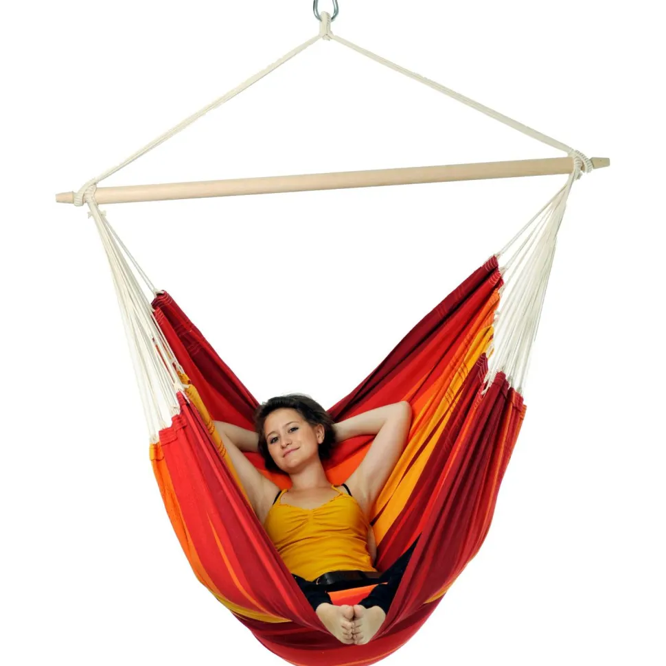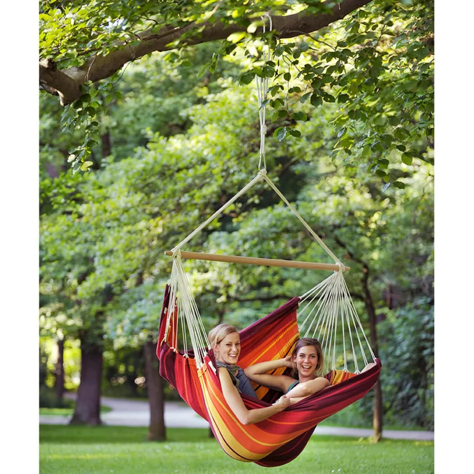 Den Gigante Hängesessel von Amazonas kannst Du im Garten vom Baum baumeln lassen, oder in Deiner Wohnung aufhängen. Mit seiner Tragkraft von 200 kg hält er es gut aus, wenn Du es Dir mit Deiner besten Freundin in dem Gigante Hängesessel gemütlich machst. Der 1,40 m breite Buchenholzstab hält die Gigante Hängesessel in ihrer Breite stabil, sodass ihr nicht aufeinander rollt.