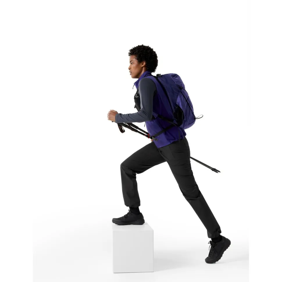 Damit Du die Women’s Gamma Pant von Arc’teryx bequem unter einem Klettergurt tragen kannst, ist der Hüftbund besonders flach verarbeitet. So trägt er nicht auf und Du kannst Dich auch bei langen Einsätzen in der Wand auf komfortable Bedingungen freuen. Mit insgesamt drei geräumigen Taschen, die jeweils mit Reißverschlüssen versehen sind, bietet die Hose genügend Stauraum für Smartphone, Schlüssel und Co. Der spezielle Stoff der Hose überzeugt durch eine hervorragende Atmungsaktivität. Das bedeutet angenehm trockene und luftige Bedingungen beim Sport, ohne ungemütlich feuchtes Tragegefühl.