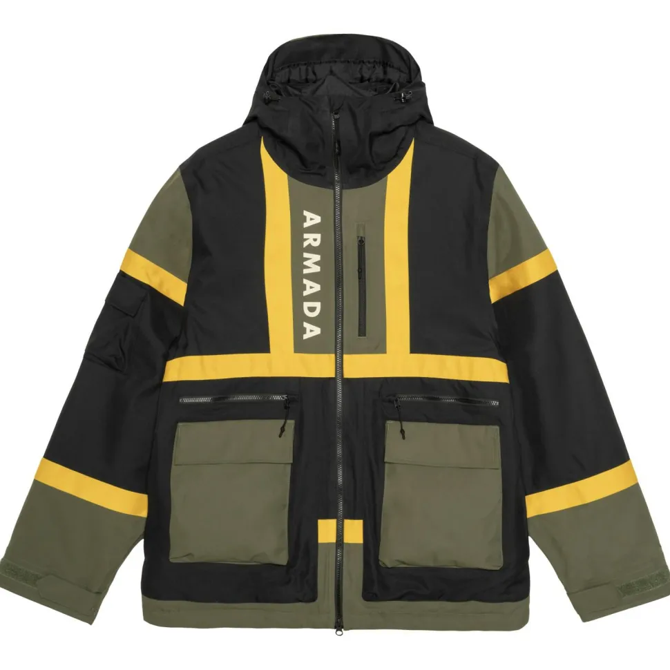 Ab geht’s ins weiße Gold: die BDOG Jacket von Armada bietet Dir allerhöchsten Komfort und Funktionalität auf der Piste! Die Skijacke ist aus einem atmungsaktiven, absolut wasserdichten Gewebe mit PFC-freiem DWR-Finish sowie versiegelten Nähten gefertigt und hält Dich absolut trocken. Die Kunstfaserfüllung aus recyceltem Material sorgt für angenehme Isolation, eine Unterarmventilation schützt Dich vor Überhitzung und der verstellbare Powder Skirt hält Kälte und Schnee effektiv draußen. Der Schnitt ist auf sportliche Pistenaction ausgelegt und schränkt Dich nicht ein, der Kinnschutz sowie die Handwärmetaschen sind mit softem Microfleece für extra Komfort und Wärme gefüttert. Eine Skipasstasche sowie eine interne Medientasche sind ebenfalls mit dabei.Tipp topp!