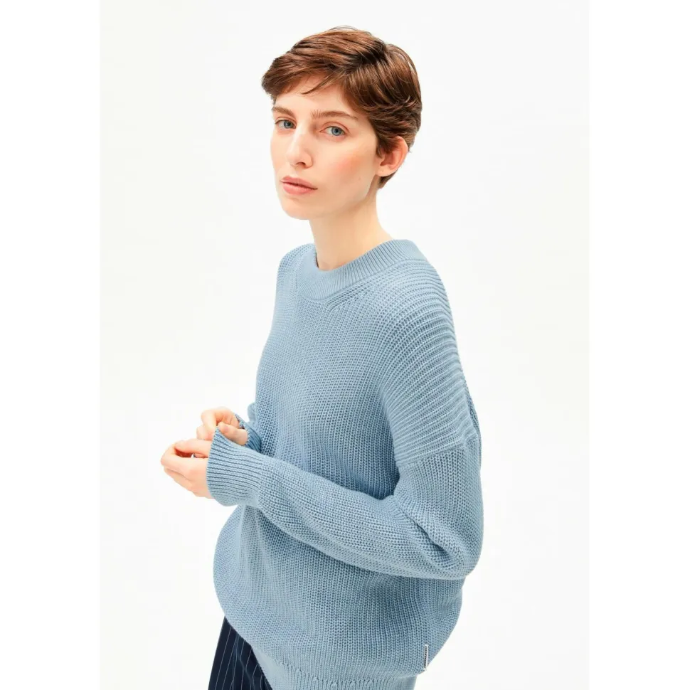 Der Women’s Vanisé Knit Sweater von ARMEDANGELS eignet sich für kalte Tage in Deinem Alltag. Er ist atmungsaktiv und schmiegt sich dank der Verarbeitung von Baumwolle angenehm an Deinen Körper an. Der verspielte Look kann vielseitig kombiniert werden und zieht alle Blicke auf sich.
