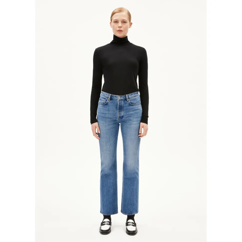 Ein täglicher Liebling – die Women’s Velaari von ARMEDANGELS bietet so viel Bequemlichkeit und Komfort, dass man sie immer tragen möchte. Die Jeans besteht aus nachhaltig hergestellter und recycelter Bio-Baumwolle mit einem Hauch von Elasthan. Der robuste und sehr hochwertige Jeansstoff liegt super weich auf der Haut und sorgt für eine sehr natürliche Bewegungsfreiheit. Mehrere Taschen bieten Platz für Kleinigkeiten und die Gürtelschlaufen ermöglichen es einen Gürtel zu kombinieren. Die Velaari kommt in einem geraden und lockeren Schnitt.