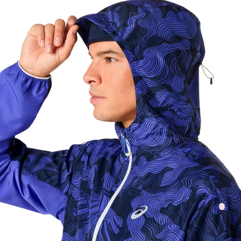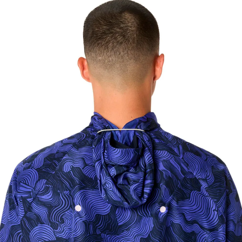 Praktisch für längere Touren: Das erweiterbare Rückenpanel schafft Platz, wenn Du die Jacke über einer Lauf- oder Trailweste trägst. Eine elastische Kapuze und die justierbare Kordel sorgen für einen zuverlässigen Sitz im Gelände. Abgerundet wird die Jacke durch einen Print, der vom Fuji inspiriert ist – perfekt für spontane Offroad-Runden.