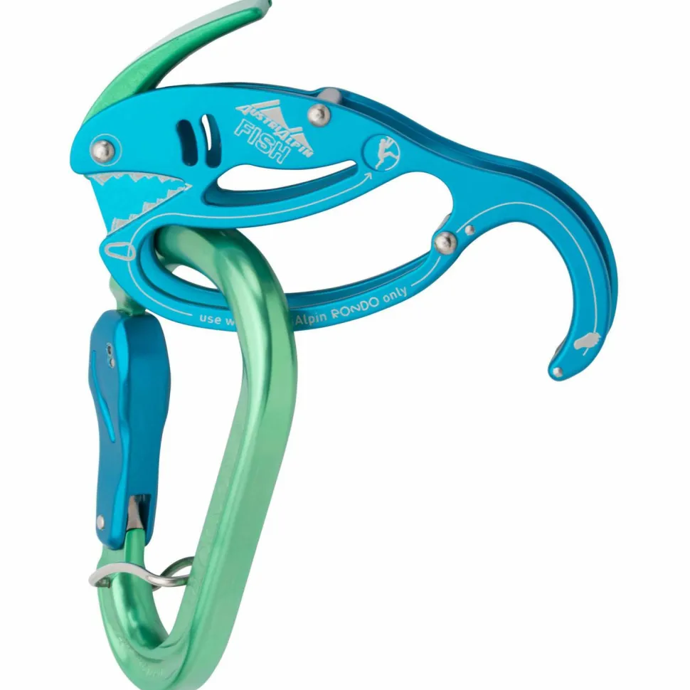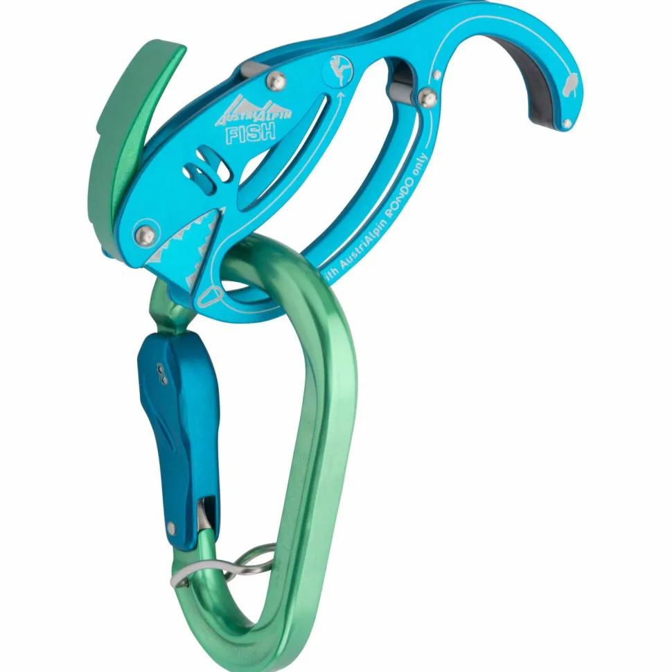 Optimal eignet sich das Fish Autotube Set HMS Rondo Selfie Sicherungsgeräte-Set von AustriAlpin zum Einsatz beim Sportklettern. Ob in der Halle oder am Fels, das Set bietet eine einfache Handhabung und eignet sich als absolut sicheres Gerät auch für den Einsatz mit Kindern. Der Fish verfügt über eine selbstständige Blockierfunktion, sobald das Kletterseil belastet wird. Karabiner und Seil verklemmen sich so, dass der Mechanismus blockiert und der Kletterer sicher im Seil hängt.Der RONDO-Karabiner ist zudem mit einem Slide-Autolock-System ausgestattet. Hierbei klickt er selbst zu, ohne dass ein Schrauben oder Fixieren nötig ist. Um den Karabiner und dadurch auch das Sicherungsgerät vor einem Verdrehen in der Gurtschlaufe zu bewahren, ist der RONDO-Karabiner mit einer Selfie-Konstruktion ausgestattet. Mit einem Drahtbügel lässt er sich in die Gurtschlaufe einhaken, wodurch das Gerät immer in der sichersten Position bleibt. Neben den vielen technischen Funktionen sieht das Set durch eine gelungene Optik einfach cool aus und passt hervorragend zu einem sportlich lässigen Kletteroutfit. Sicher am Seil unterwegs, ob in der Halle oder am Fels.
