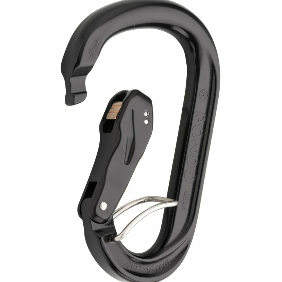Einfach im Handling und sicher in jedem Einsatzgebiet am Fels: der HMS Rondo Alu Slide-Autolock Selfie von AustriAlpin ist ein willkommener Sicherungspartner. Mit seinem ausgeklügelten Verschlusssystem lässt er sich einfach und schnell öffnen. Ohne Belastung schnappt er automatisch zu und bietet so höchste Sicherheit beim Klettern. Die Verdrehsicherung hält den Karabiner immer in der optimalen Position der Gurtschlaufe.