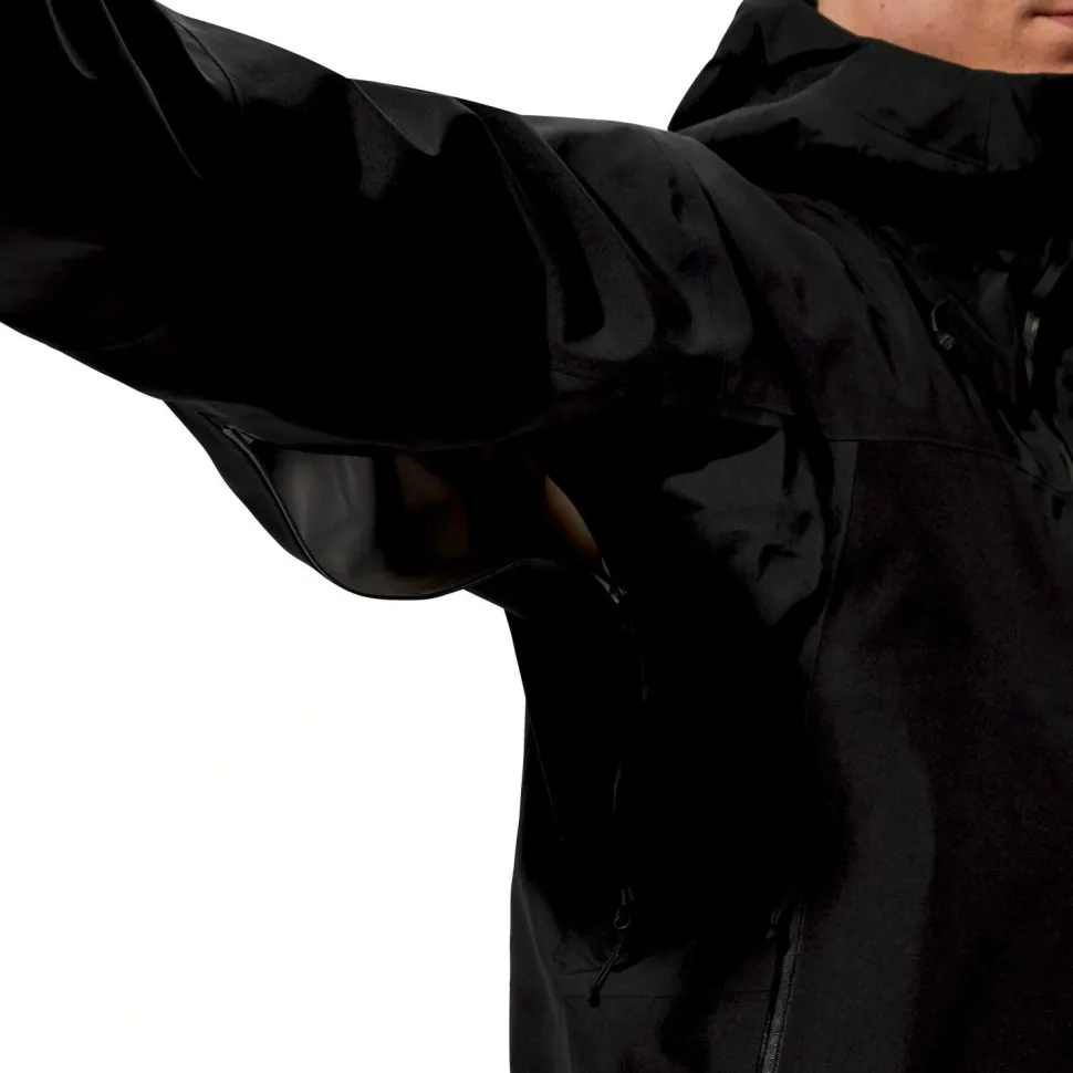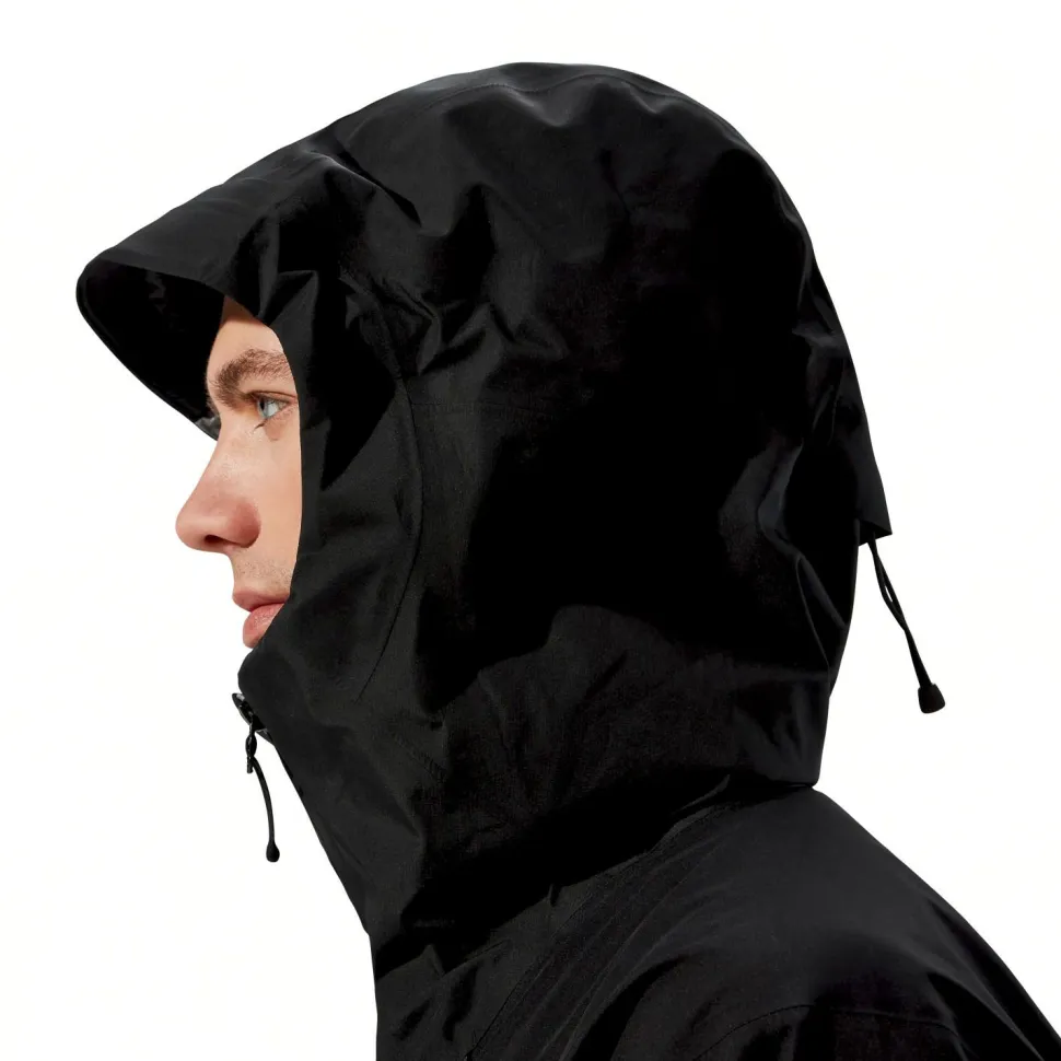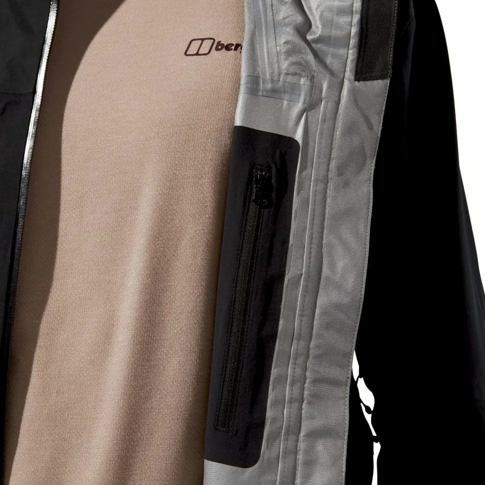 Um Dir die verslustsichere und vor Wasser geschützte Mitnahme wichtiger Kleinigkeiten, die schnell griffbereit sein müssen, zu ermöglichen, haben Berghaus der Ridge-Seeker GTX zwei Front- und eine Brusttasche mit Reißverschluss spendiert, sowie eine zusätzliche Innentasche angebracht. Und wenn der Wind Orkanstärke erreicht, schützt der hoch schließende Stehkragen den Halsbereich zuverlässig. Die Kapuze schließlich ist zweifach verstell- und damit anpassbar; außerdem kannst Du sie auch gut mit einem Helm tragen, falls Du die Jacke zum Biken, Klettern oder beim Klettersteig gehen tragen möchtest.