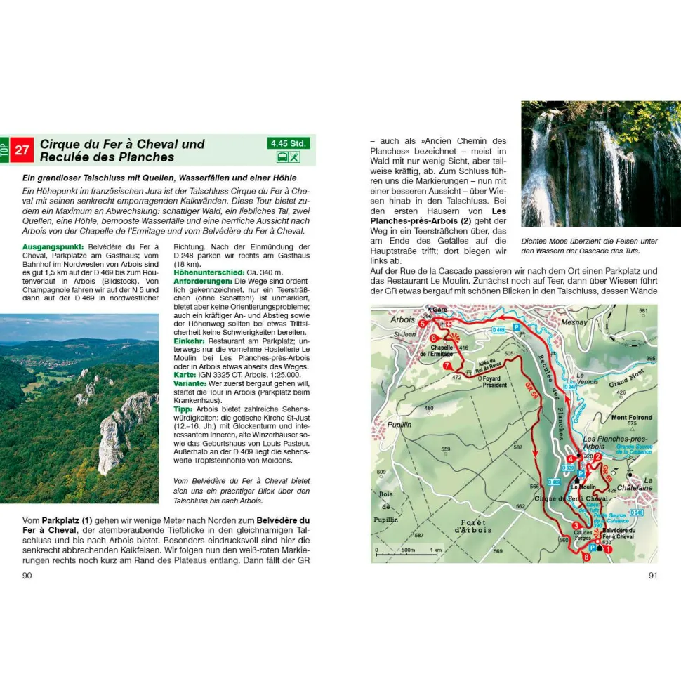 Beeindruckend sind die hufeisenförmigen Talschlüsse mit ihren senkrechten Felswänden, von denen tosende Wasserfälle herabstürzen. Auch die Tropfsteinhöhlen sind sehenswert. Zahlreiche Seen laden zum Baden ein. Sümpfe, unberührte Moore und Karstquellen sind eine weitere Besonderheit der Region. Auch Kulturinteressierte kommen hier nicht zu kurz: Hübsche Dörfer und kleine mittelalterliche Städtchen, Kirchen und Kapellen sowie Schlösser und Burgen gibt es zu entdecken. Und auf einem Stadtrundgang durch Besançon kann man zahlreiche Sehenswürdigkeiten und die hoch über der Stadt gelegene Zitadelle besichtigen.