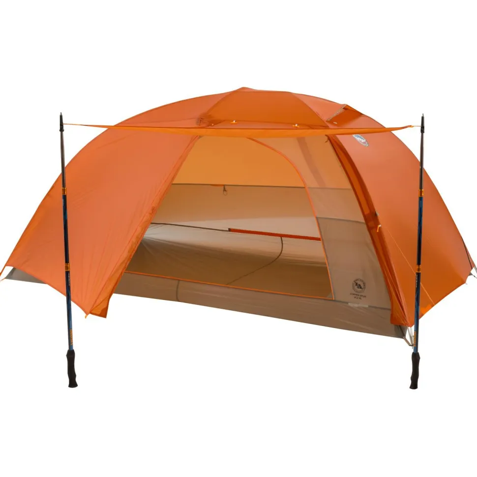 Dank mitgeliefertem Packsack kann das Copper Spur UL2 XL mit seinem gesamten Zubehör auf ein Minimum seiner Größe komprimiert werden und passt so in jeden Rucksack. Die robusten Zeltstangen sind aus leichten und stabilen Materialien hergestellt und sorgen für eine verlässliche Standfestigkeit. Reflektierende Elemente an den Schnüren machen das Zelt bei Dunkelheit gut sichtbar und peinliche Stolper-Einlagen über die Zeltschnüre gehören der Vergangenheit an. Belüftungsöffnungen bei den Türen ermöglichen einen angenehmen Luftaustausch, wenn dieser erwünscht ist. So kann ein stickiges Raumgefühl im Zelt vermieden werden. Besonders gelungen ist Big Agnes beim Copper Spur UL2 XL auch das optische Erscheinungsbild. So kannst Du Dich schon beim ersten Anblick auf die kommenden Touren freuen.
