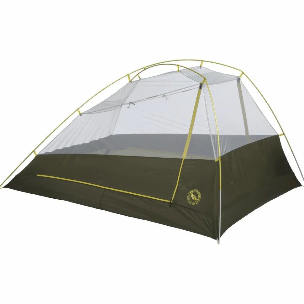 Mit dem Crag Lake SL3 hat Big Agnes ein leichtes 3-Personen Zelt im Programm, welches sich ideal für Deine nächste Trekkingtour in den Bergen sowie zum Fastpacking eignet. Das Kuppelzelt ist freistehend konstruiert und lässt sich mit den vorgespannten Abspannleinen sowie den mitgelieferten Dirt Dagger Heringen sicher am Boden verankern. Durch das vorgeformte Gestänge geht der Aufbau leicht von der Hand und das Zelt steht selbst bei schlechtem Wetter optimal. Das Innenzelt wird mit Plastikclips am Gestänge befestigt. Im Packsack lässt sich das Zelt bequem komprimieren und passt problemlos in Deinen Trekkingrucksack.