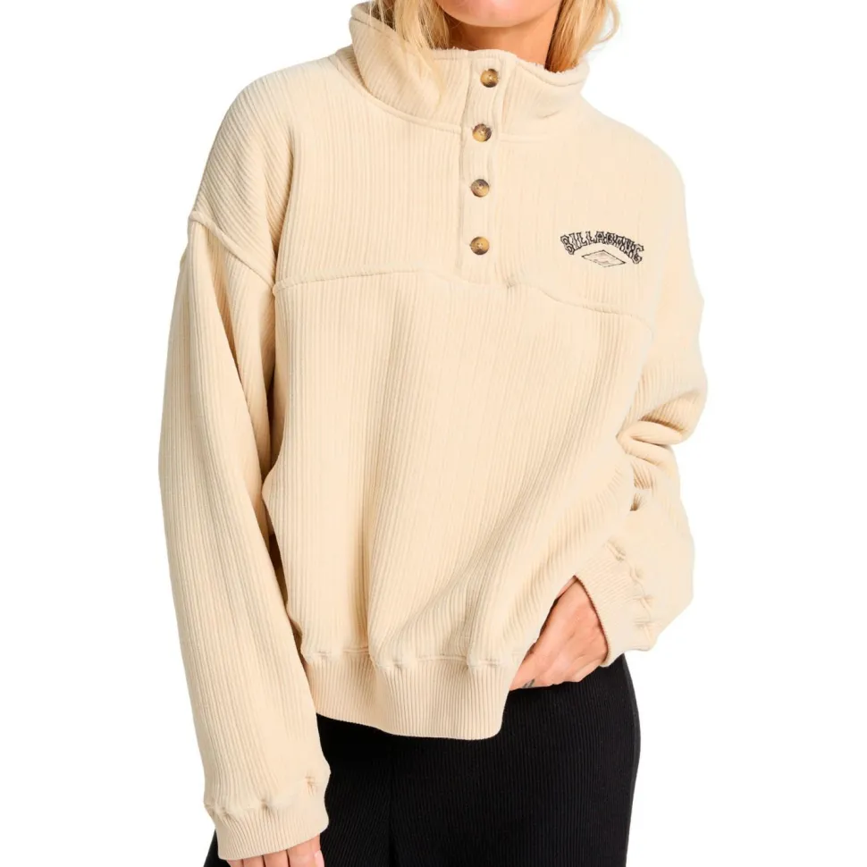 Ziehst Du Dir den Women’s All Mine Pullover von Billabong an, wirst Du sofort ein wohliges und gemütliches Gefühl haben. Dafür sorgt vor allem der weite, oversized Schnitt und der weiche Cord-Stoff.