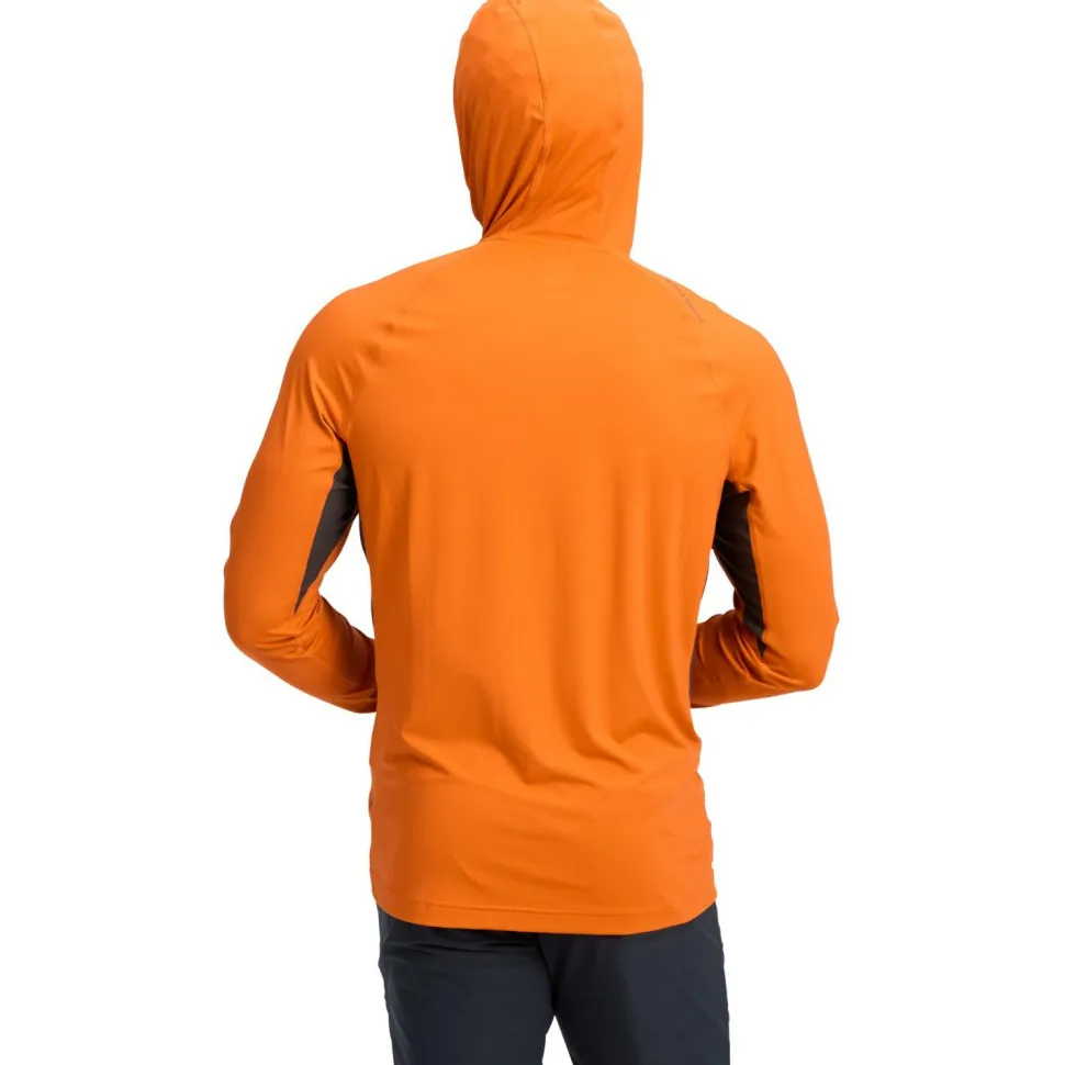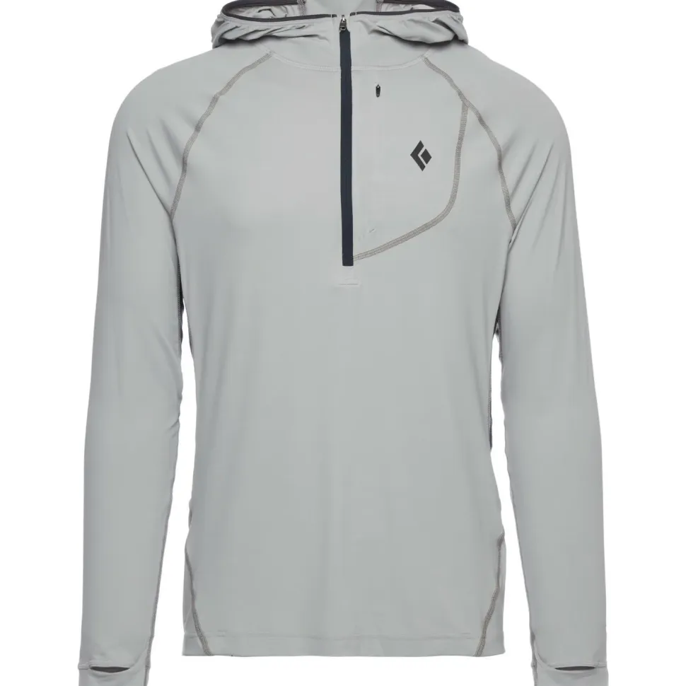 Maximal komfortabel und maximal atmungsaktiv – das ist der Alpenglow Pro Hoody von Black Diamond. Das Longsleeve besteht aus einem Kunstfaser-Mischgewebe und hat neben seiner Atmungsaktivität auch eine geruchshemmende Eigenschaft. Bei schweißtreibenden Aktivitäten ist dieses Longsleeve genau das richtige, denn dank der Belüftungsöffnungen unter den Armen, kann der Schweiß direkt entweichen. Mit den praktischen Daumenschlaufen ist der Alpenglow Pro Hoody maximal komfortabel und die Ärmel rutschen nicht hoch. Die Kapuze kannst Du außerdem auch z.B. über Deinen Fahrradhelm ziehen und in der RV-Brusttasche sind Kleinigkeiten gut aufgehoben.