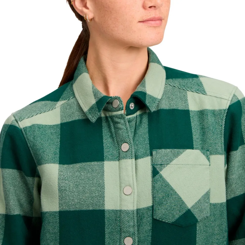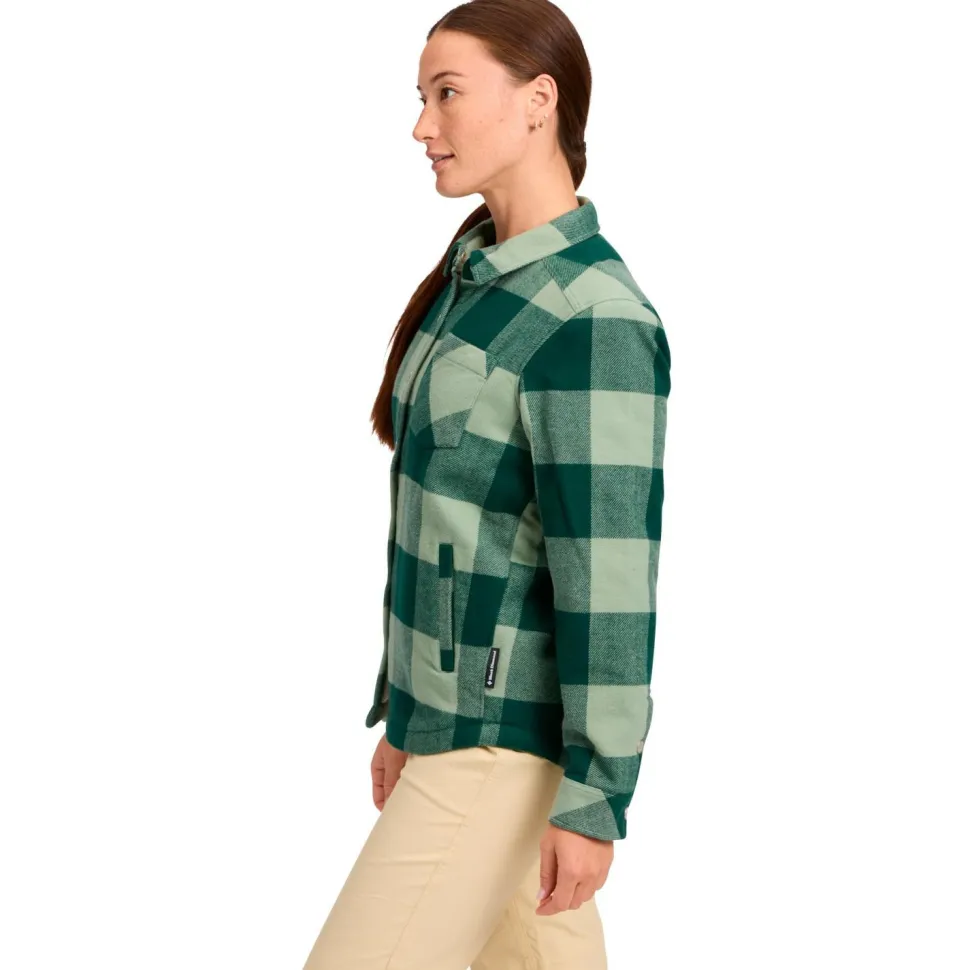 Besonders an kühlen Tagen beim Wandern und im Alltag sorgt das Women’s Project Lined Flannel Hemd von Black Diamond für ein komfortables Tragegefühl und angenehme Wärme. Dafür verfügt das Hemd aus Bio-Baumwolle über ein gefüttertes Innenfutter aus recyceltem Polyester. Das hübsche Flanellhemd wird per Knopfleiste mit Druckknöpfen verschlossen und ist mit klassischem Hemdkragen und Brusttasche ausgestattet.