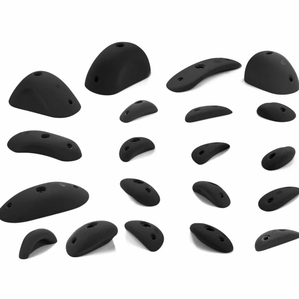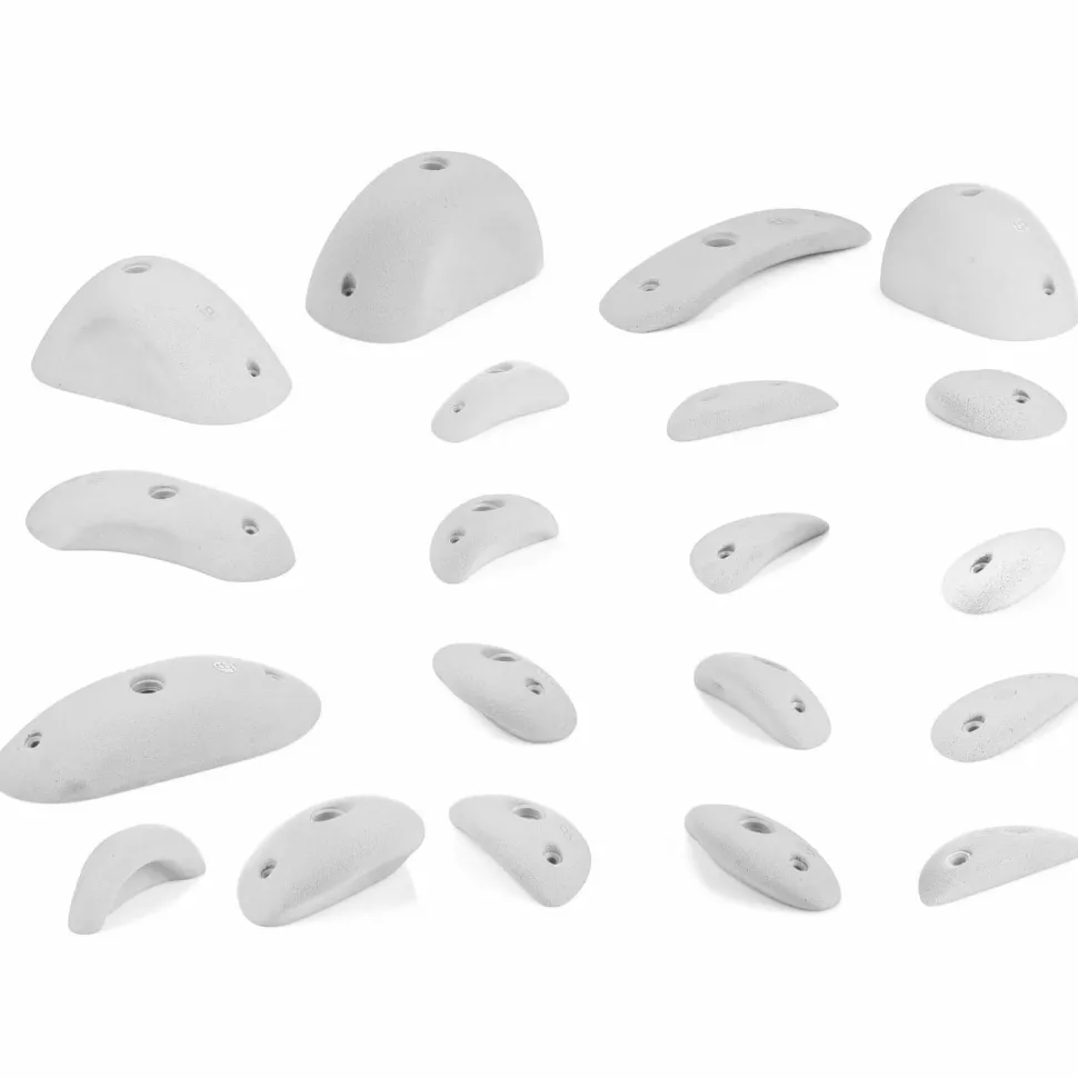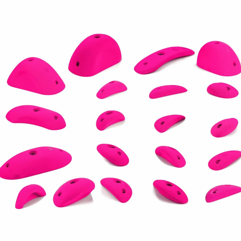 Ein bunter Mischmasch für die heimische Kletterwand – das Mixed All Set von blue pill! Hier bekommt man ein gemischtes Set aus zwanzig hochwertigen Klettergriffen, die perfekt zum Bau etwas anspruchsvollerer Routen geeignet sind. Die Pinches, Jugs und kleinen Aufleger sind aus griffigem Polyester gefertigt, das sich einfach reinigen lässt, und sind mit mehreren Befestigungspunkten für die M10-, Senkkopf- oder Zylinderschrauben versehen. So sitzen sie sicher an der Wand, während die hohle Konstruktion der Griffe Gewicht einspart.