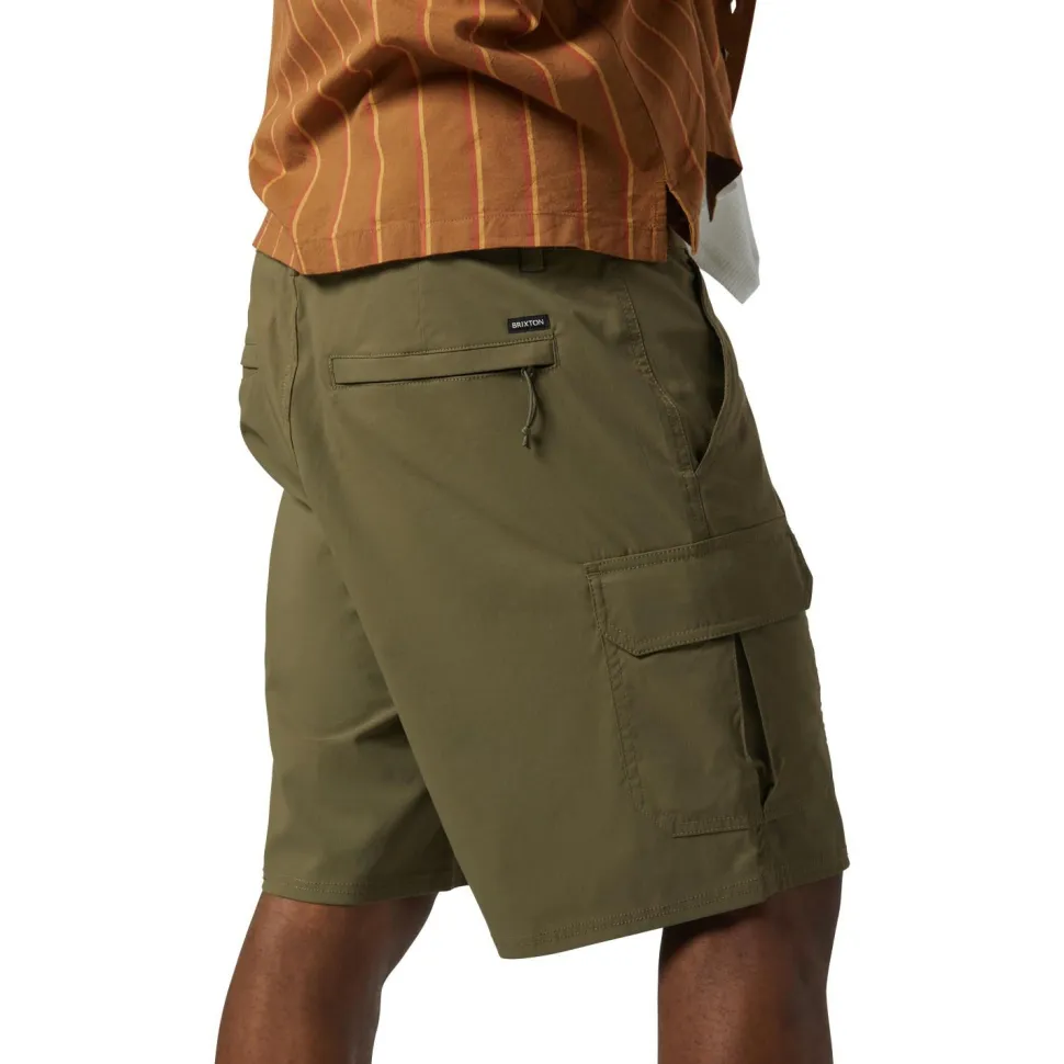 Vom faulen Tag im Liegestuhl bis zur Wanderung ist die Shyft Stretch Cargo Short von Brixton für zahlreiche Freizeitaktivitäten geeignet. Diese Shorts besteht dabei aus einem angenehmen und schnelltrocknenden Material. Zusätzlich ist sie äußerst flexibel und wirkt durch den großzügigen Schnitt nicht einengend. Der Hüftbund ist bei dieser Hose elastisch, Du kannst ihn bei Bedarf aber auch zusätzlich mittels Kordelzug einstellen. Praktisch: In mehreren Taschen finden zusätzlich allerlei Kleinteile zuverlässig Platz. Außerdem verfügen zwei der Taschen über einen praktischen Schlüsselclip.