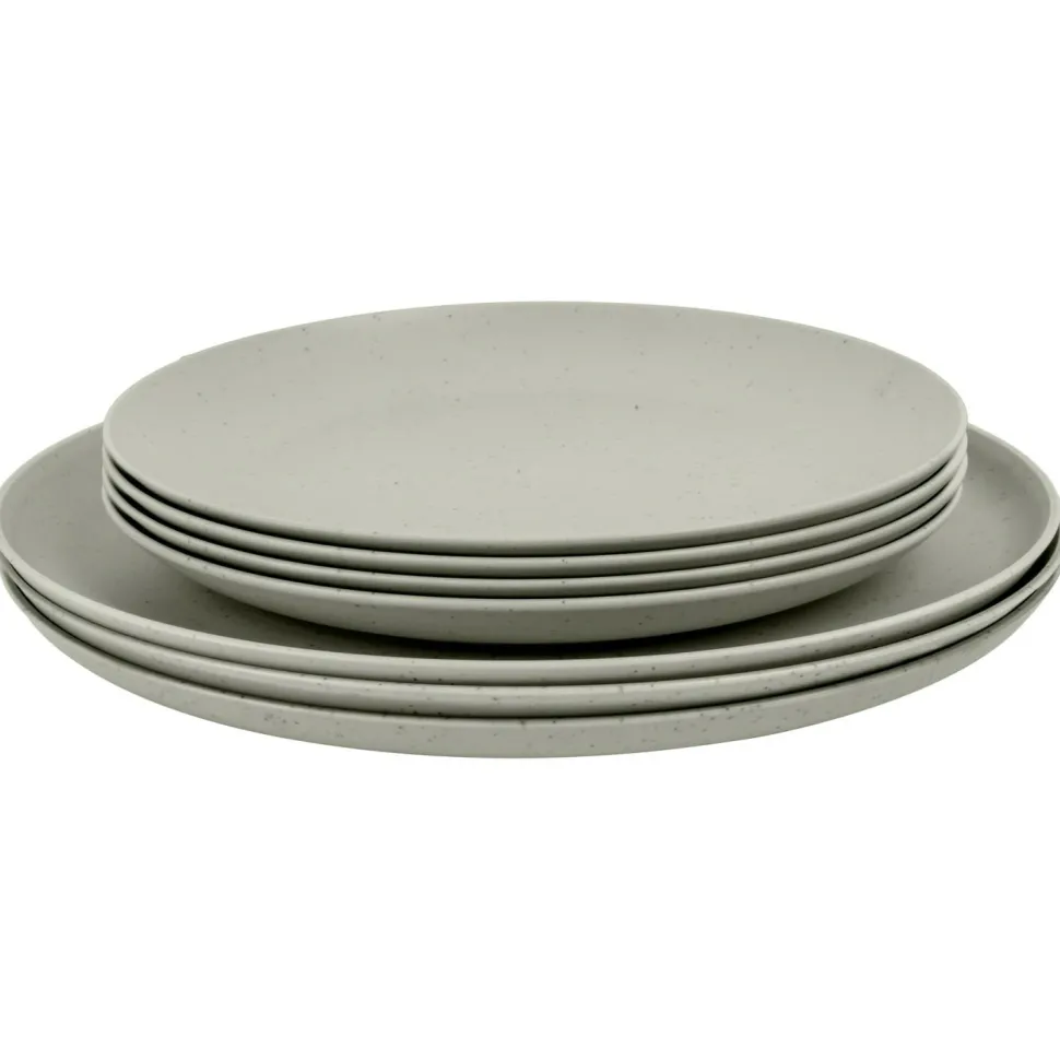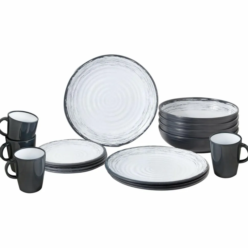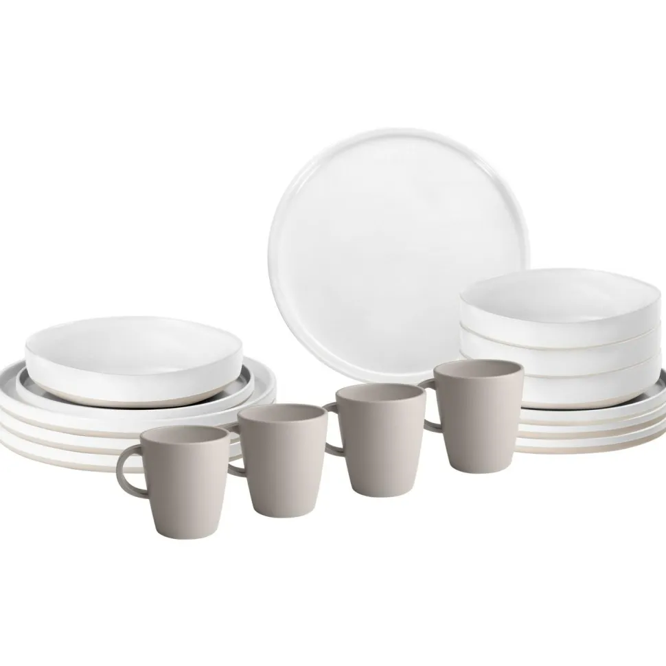 Das 16-teilige Set besteht aus je vier Teller, kleinen Tellern, Schüsseln und Tassen. Das Material ist hitzebeständig und für Heißgetränke problemlos geeignet. Zudem ist es pflegeleicht, hygienisch und bruchfest. Mit dem zeitlosen Design ist das Set elegant und schick. Ob Frühstück, Mittagessen oder Brotzeit, damit ist der Camper auf der sicheren Seite!
