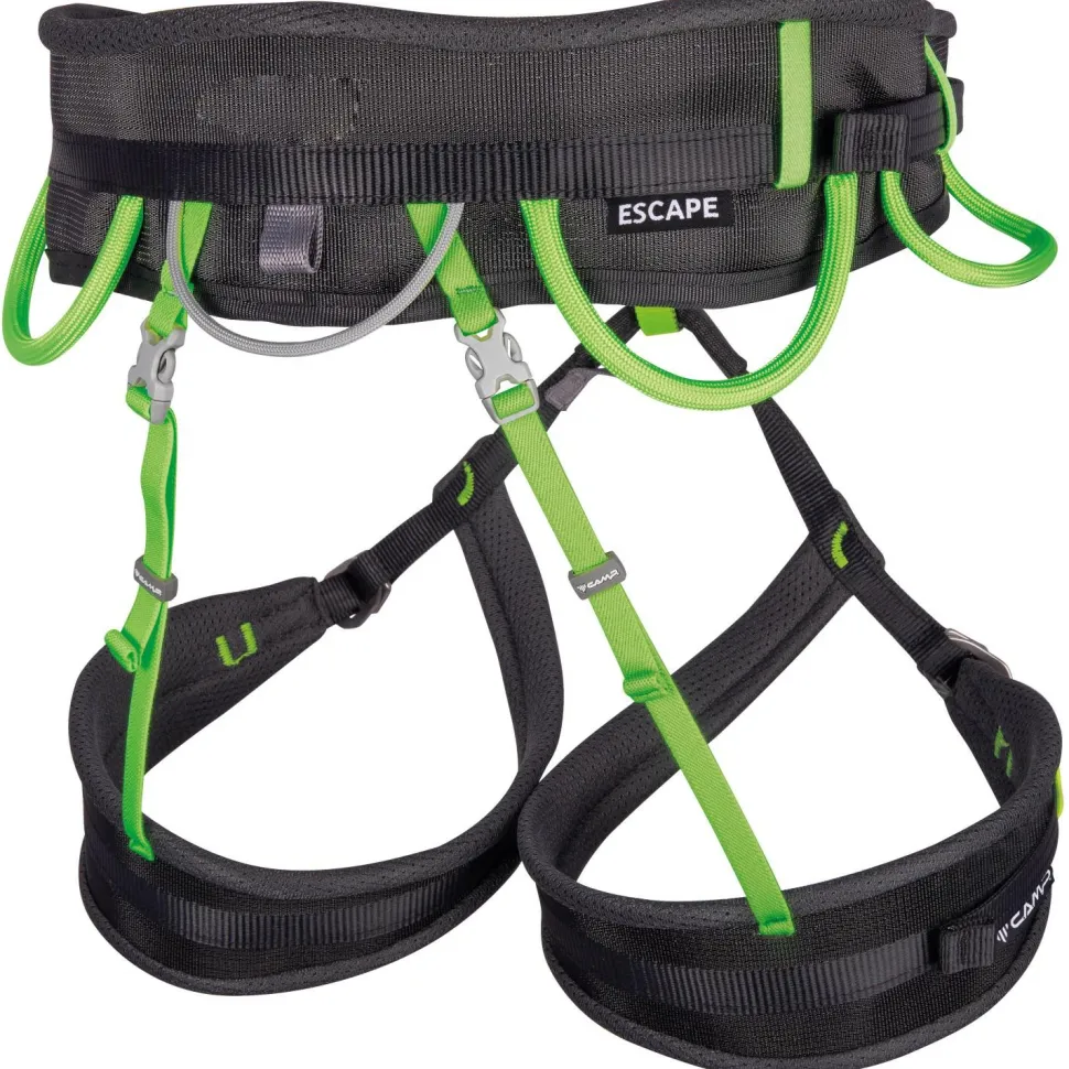 Der Escape von den italienischen Kletter- und Bergsport-Spezialisten von C.A.M.P. ist ein sehr leichter, komfortabler und klein zusammenpackbarer Klettergurt der Extraklasse, der sich in erster Linie an Felskletterer, Alpinisten und Mehrseillängen-Fans richtet. Das Material besteht aus einer gemeinsam gewebten Verbundstruktur aus Polyester- und Monofilament-Faserband, und das atmungsaktive Mesh-Innenfutter sorgt dabei für ein angenehmes Tragegefühl. Am Hüft- und an den Beingurten sind selbstsperrende Edelstahl-Schnallen angebracht, sodass Du den Gurt nicht nur optimal an Deine individuellen Bedürfnisse anpassen kannst, sondern auch ein Plus an Sicherheit mitgeliefert bekommst. Außerdem kommt der Escape mit vier differenzierten Materialschlaufen: vorne befinden sich zwei vorgeformte Schlaufen, hinten zwei Flexiblere.