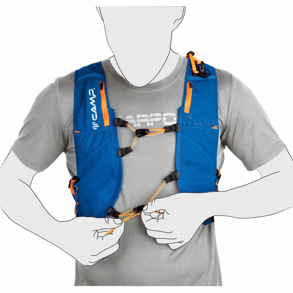 Beim Trailrunning bietet der Trail Force 2 Trailrunningrucksack von C.A.M.P. genügend Platz für alle wichtigen Ausrüstungsgegenstände und Accessoires. Auf seiner Vorderseite lassen sich Smartphone, Schlüssel, Gels und Energieriegel verstauen. Außerdem können in den Schulterträgern zwei bis zu 600 ml große Soft Flask Trinkflaschen verstaut werden.