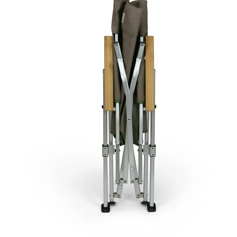 Dieser Campingstuhl überzeugt mit seinem hochwertigen Aluminium-Rahmen, robustem Canvas-Stoff und edlen Bambus-Armlehnen. Die extra hohe Rückenlehne sorgt für entspannte Stunden.