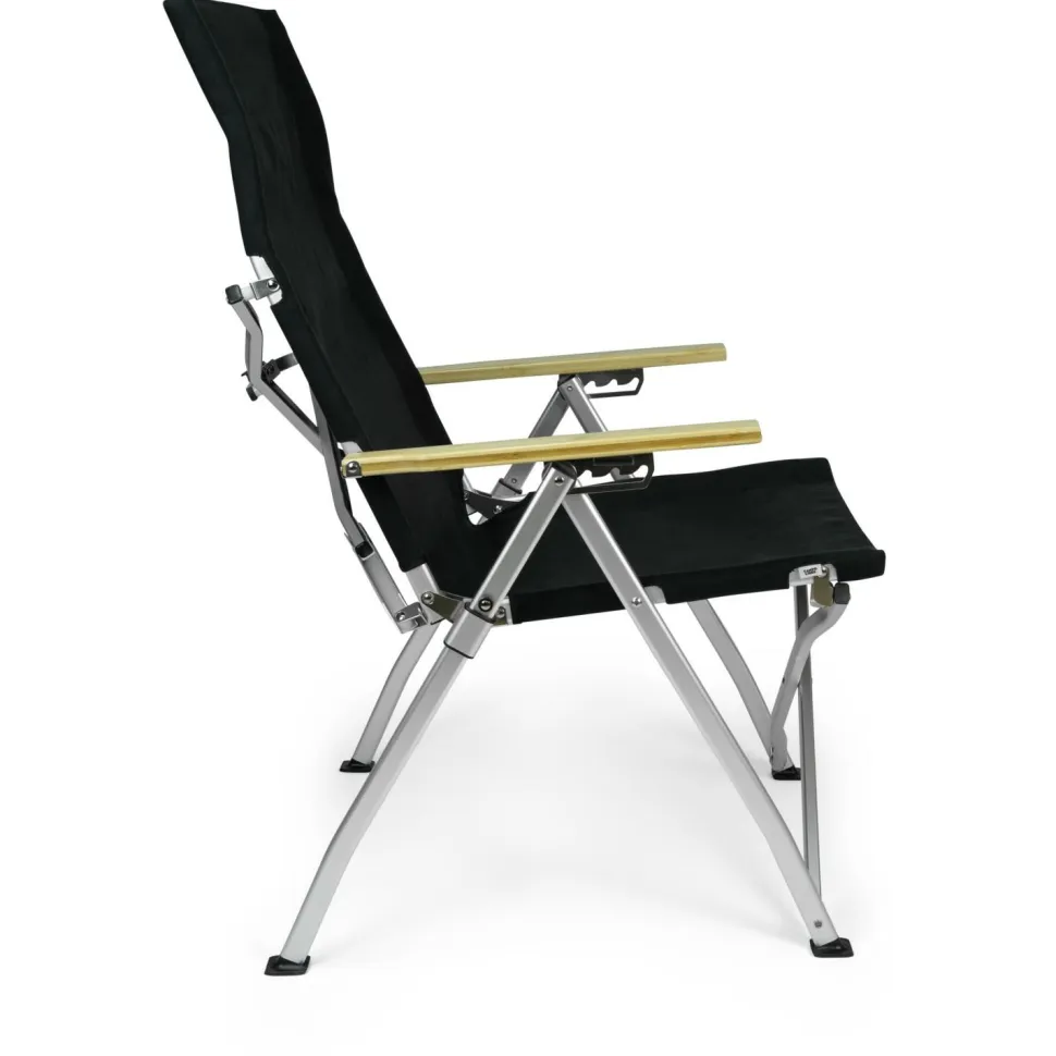 Dieser Campingstuhl überzeugt mit seinem hochwertigen Aluminium-Rahmen, robustem Canvas-Stoff und edlen Bambus-Armlehnen. Die extra hohe und 4-fach verstellbare Rückenlehne sorgt für entspannte Stunden.