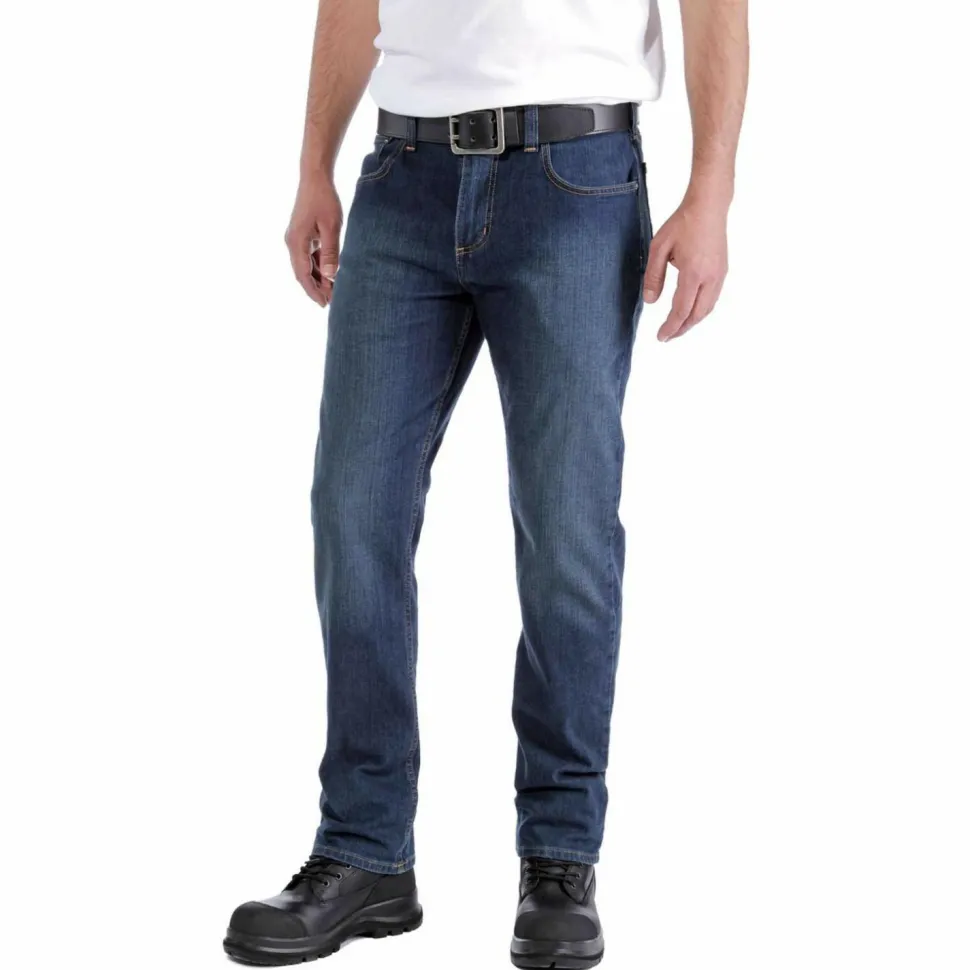 Die Rugged Flex Relaxed Straight Jeans von Carhartt ist mit ihren dreifach gesteppten Nähten und dem dicken Jeansstoff besonders abriebfest und langlebig. Dank dem leichten Stretch bietet sie zudem einen hohen Tragekomfort und viel Bewegungsfreiheit.