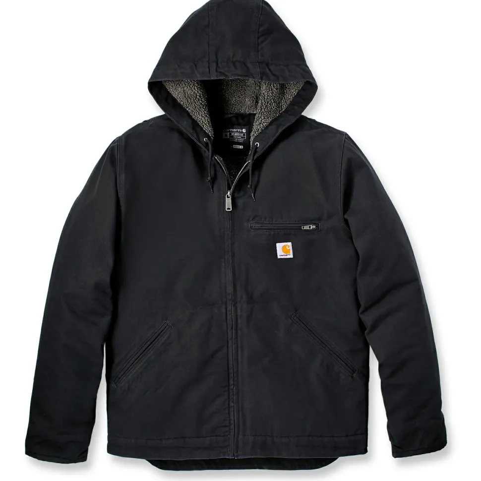 Die Washed Duck Sherpa Lined Jacket von Carhartt überzeugt mit tollen Features und einem besonders coolen Look. Sie besteht aus einem Soft Duck Material aus Baumwolle, dieses verfügt über einen weichen Griff, ist dennoch sehr robust und fest. Die Fütterung sorgt für eine Extraportion Wärme und die mit einem Kordelzug verstellbare Kapuze mit einem kuschligen Sherpa-Futter schützt Kopf, Ohren und Nacken vor kühlem Wind.