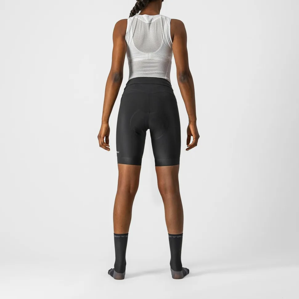 Was ist das wichtigste bei einer Rennrad-Bib? Klar, das Sitzpolster! Und deshalb haben Castelli bei der Women’s Endurance ihr komfortabelstes Polster verbaut, das Progetto X2 Air Donna. Das Endurance Evolution– Gewebe hat eine geschmeidige, softe Haptik und sorgt für ein angenehmes, trockenes Tragegefühl; der Schnitt der Bib ist anatomisch designt für die Haltung auf dem Rad. Damit nichts verrutschen kann, sind die Innenseiten der Beine mit dem Giro3-Gripper ausgestattet. Ein echt cooles Detail sind aber die Träger: die sind extra breit und können, ganz nach Deiner Vorliebe, vorne oder hinten gekreuzt werden. Soweit, so unspektakulär, aber: sie halten die Hose zwar dort, wo sie sein soll, sind aber dermaßen flexibel, dass Du, wenn die Natur ruft, die Women’s Endurance und Dein Trikot dafür nicht einmal ausziehen musst, weil sich die Träger lang genug ziehen lassen!