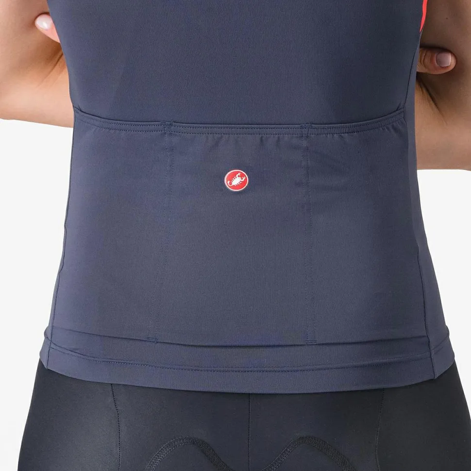 Das Castelli Women’s Sole Top bietet mit seinen drei clever platzierten Rückentaschen eine durchdachte Funktionalität, die das Herz jeder Radfahrerin höherschlagen lässt. Egal ob Energieriegel, Schlüssel oder ein kleines Werkzeugset – alles findet seinen Platz und ist stets griffbereit. So kannst Du Dich voll und ganz auf Deine Fahrt konzentrieren, ohne ständig nach einem Rucksack greifen zu müssen. Diese praktische Lösung sorgt für mehr Komfort und Effizienz, besonders auf langen Strecken.