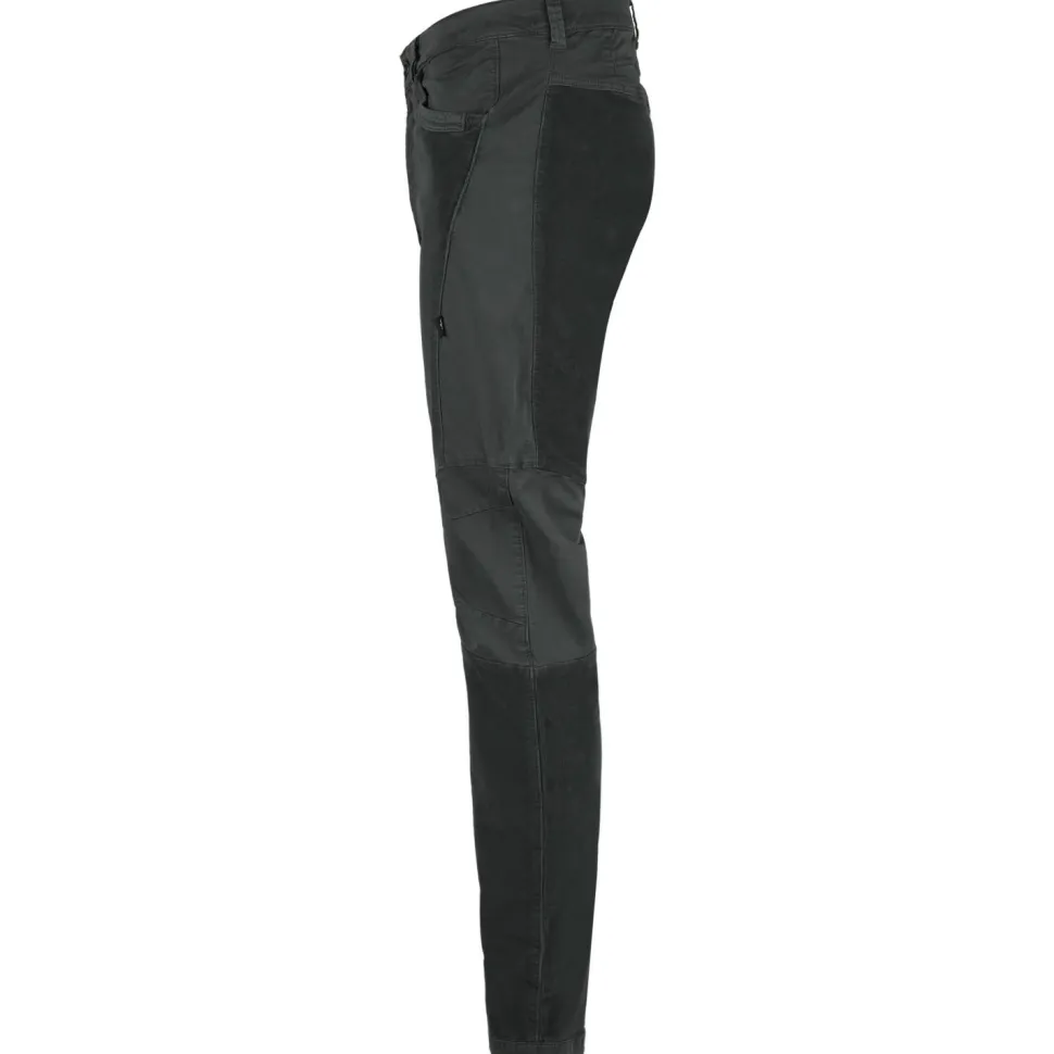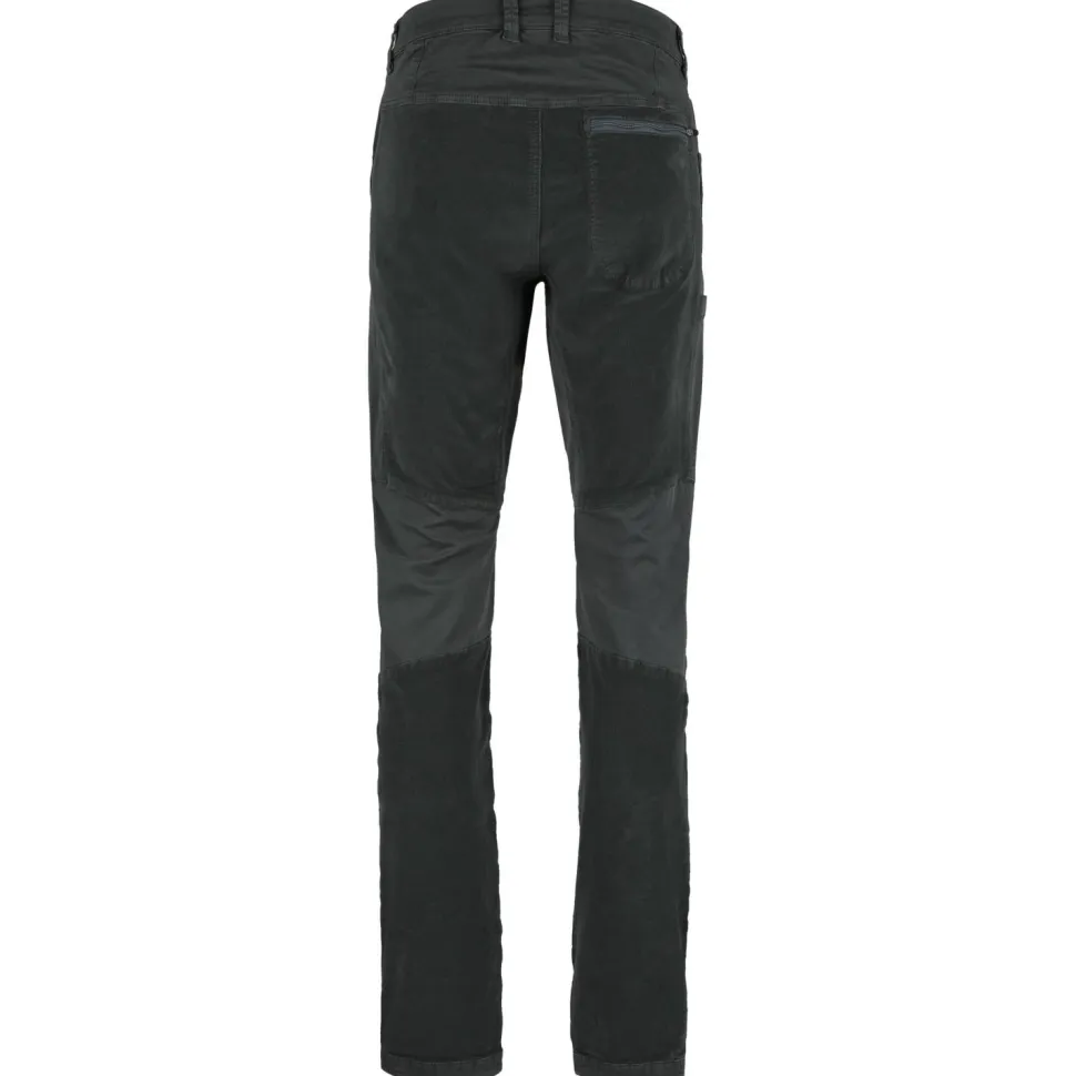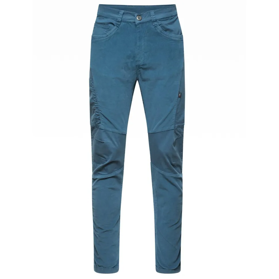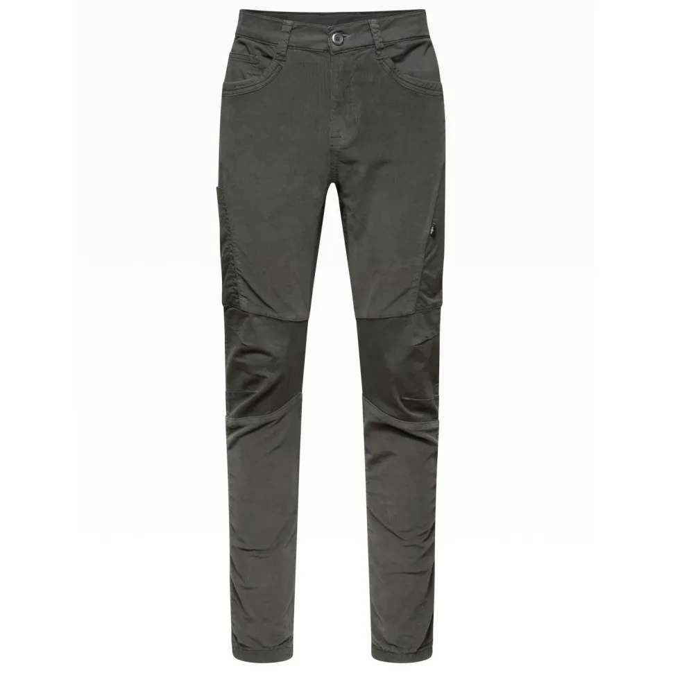 Hergestellt aus Cord trägt sich die lange Hose angenehm auf der Haut und sieht lässig aus. Das Material ist elastisch. Weit entfernte Tritte werden somit entspannt erreicht. Verstärkungen an den Knien schützen bei Kontakt mit der Wand und machen die Hose besonders abriebfest. In verschiedenen Taschen auf der Vorder- und Rückseite lässt sich nötiger Kleinkram schnell verstauen. Bei Bedarf kann die Hose mit einem Gürtel ergänzt werden.