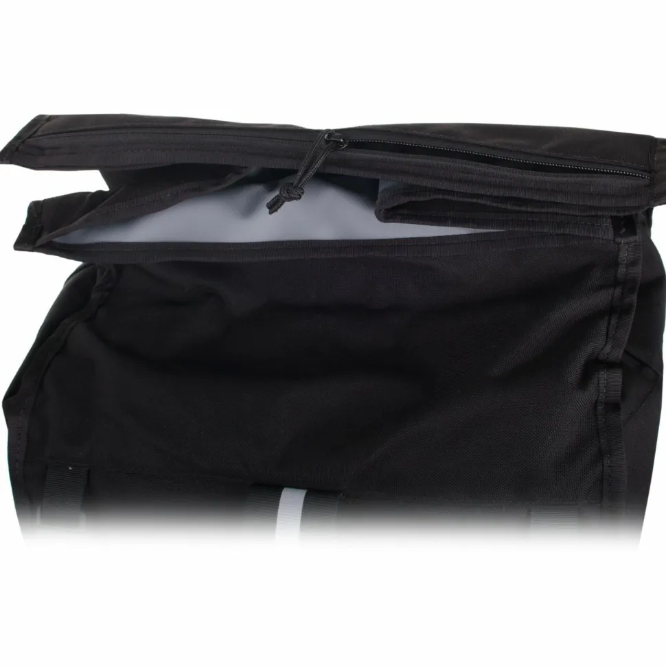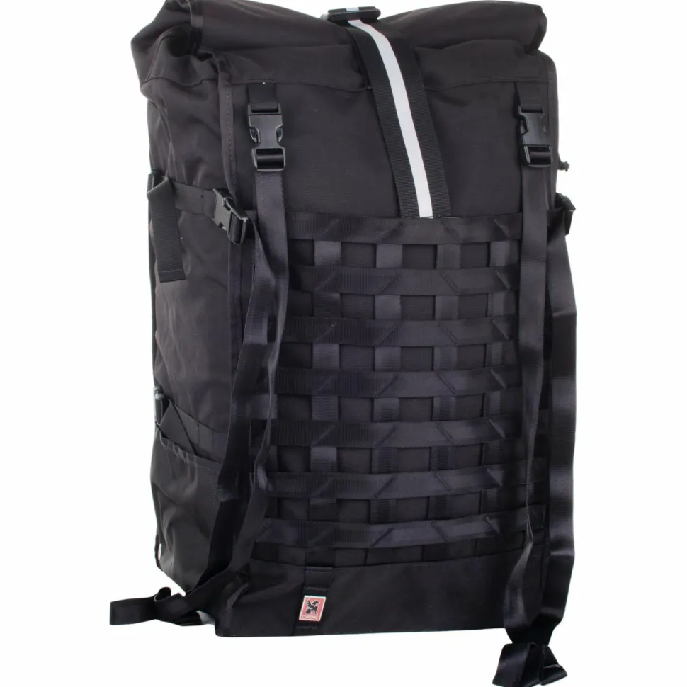 Ob Equipment, Einkäufe oder Reisegepäck, da passt wirklich alles rein: der Barrage Pro von Chrome ist ein enorm geräumiger Bike-Rucksack, der kaum Platzwünsche offenlässt!Als Obermaterial kommt ein extrem robustes und belastbares Nylongewebe zum Einsatz. Der praktische Rolltop-Verschluss ist einfach zu öffnen und schließt den Rucksack dicht ab. Apropos dicht, das 59 Liter fassende Hauptfach ist absolut wasserdicht und hält den Inhalt selbst bei fiesen Regengüssen knochentrocken. An der Außenseite ist ein elastisches, verstellbares 4-Punkt Cargo-Netz verarbeitet, das ebenfalls richtig was wegpacken kann. Eine Seitentasche für Trinkflasche oder Bügelschloss ist auch dabei. Die Schultergurte sind individuell regulierbar und der ebenfalls verstellbare Brustgurt gibt zusätzliche Stabilität. Das Rückenteil aus atmungsaktivem EVA-Schaum sorgt für extra Tragekomfort und reflektierende Details für bessere Sichtbarkeit. Mit dem Barrage Pro ist man auf dem Bike bestens bepackt!