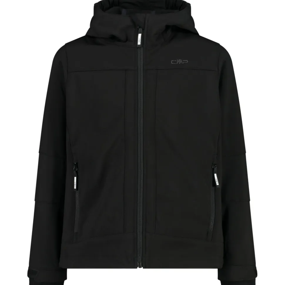 Dank hohem Kragen mit Kinnschutz am Reißverschluss und Kapuze sind auch Kopf und Hals dabei bestens vor Wind, Kälte und Regen geschützt. Die wetterfeste CMP Jacke ist mit Klettverschlüssen an den Ärmelenden ausgestattet und lässt sich per Kordelzug auch am Jackensaum verstellen. Für die Hände oder wichtige Accessoires stehen zwei praktische Fronttaschen mit Reißverschluss in der Boy’s Jacket Fix Hood Softshell Softshelljacke bereit.