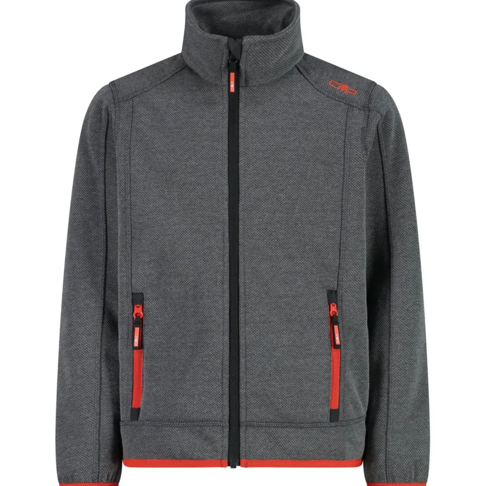 Die Boy’s Jacket Jacquard Knitted Fleecejacke von CMP ist aus 280 g/m² starkem Knit Tech Fleece gefertigt. Das dicke Gewebe sorgt bei kaltem Wetter für angenehme Wärme und ist gleichzeitig atmungsaktiv. Feuchtigkeit vom Körper transportiert die Fleecejacke zügig nach außen und nach dem Waschen ist sie in kürzester Zeit wieder komplett trocken. Die CMP Fleecejacke aus Polyester ist ergonomisch geschnitten und verfügt über komfortable Flachnähte und einen durchgehenden Frontreißverschluss mit Kinnschutz. Zusätzlich ergänzen zwei praktische Taschen mit Reißverschluss die warme Fleecejacke.