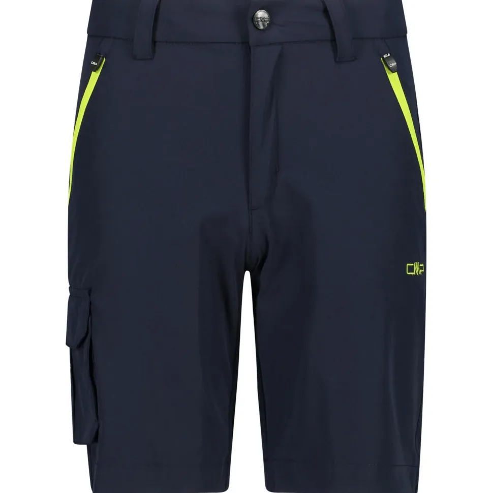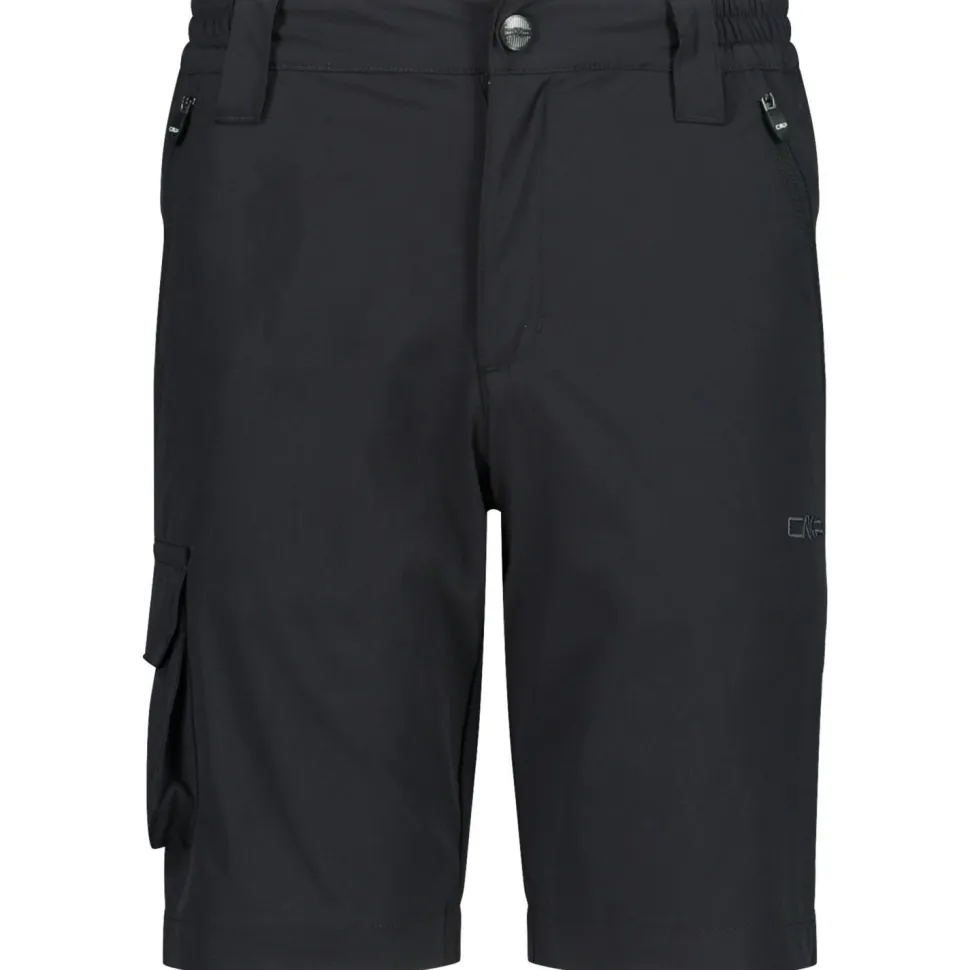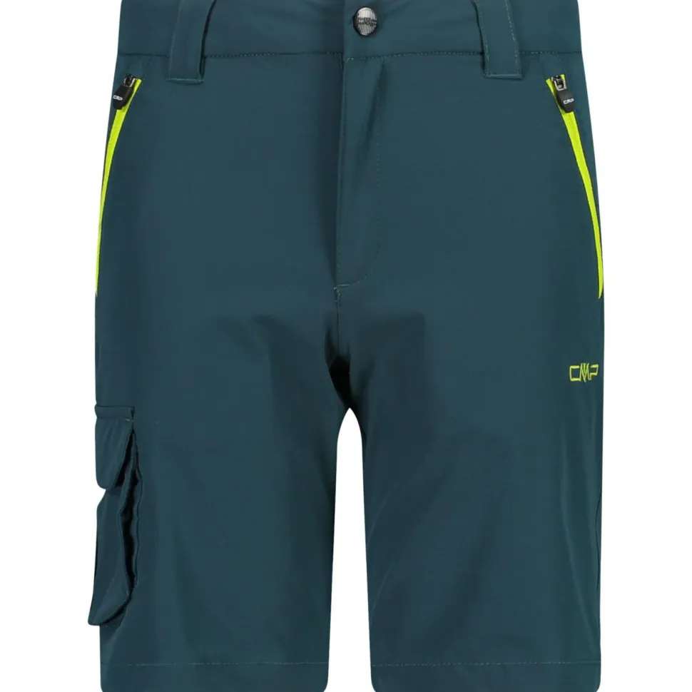 Die Kid’s Bermuda 4-Way Stretch von CMP eignet sich für aktive Ausflüge in die Natur an warmen Tagen. Der moderne und sportliche Look kann sich sehen lassen. Mit dem Logoprint am Bein wird das Design unterstrichen. Die Beintasche bietet Platz für kleine Schätze. Mit den beiden Seitentaschen mit Reißverschluss bietet die Shorts außerdem Platz wichtige Kleinigkeiten sicher zu verstauen. Die Gürtelschlaufen ermöglichen einen individuellen Tragekomfort, da die Shorts mit Gürtel getragen werden kann. Dank der Materialzusammensetzung mit Elasthan ist sie stretchy und bietet damit ein hohes Maß an Bewegungsfreiheit.