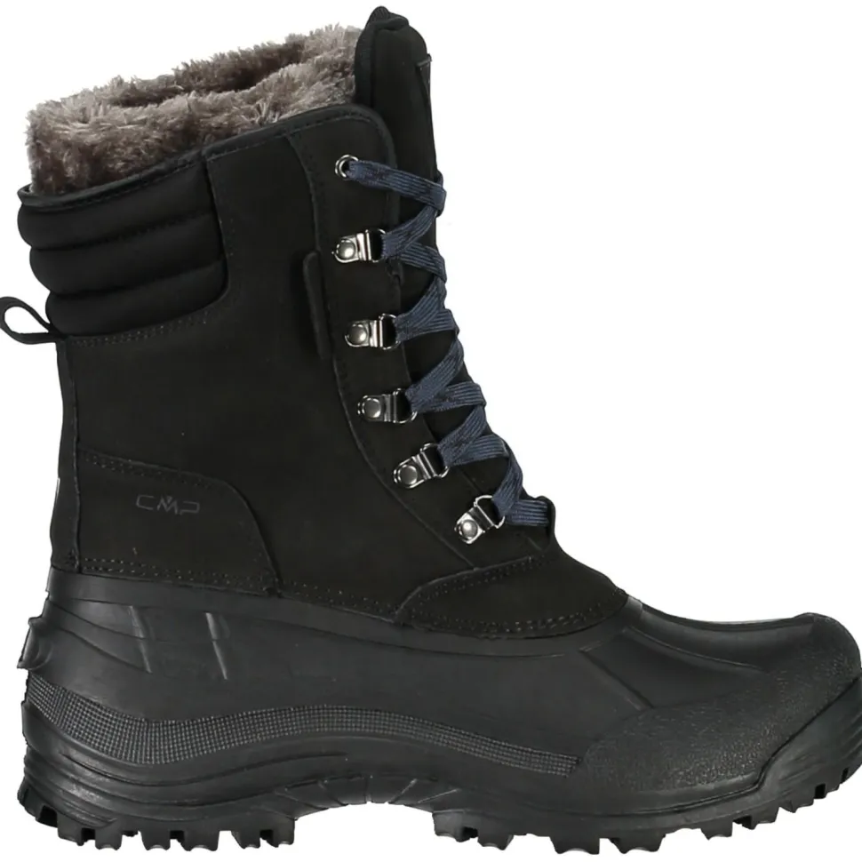 Der untere Teil der Kinos Snow Boots Waterproof Winterschuhe besteht aus wasserdichtem und abriebfestem TPR, das auch intensiver Nässe, Schnee und Schneematsch souverän widersteht. Für besten Halt auf Schnee und Eis sorgt eine griffige und grob profilierte Gummisohle. Mit einer hohen Schnürung werden die warmen CMP Stiefel sicher und bequem verschlossen. Eine praktische Anziehschlaufe erleichtert das Anziehen der hohen Stiefel.