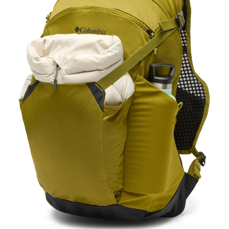 Der Blackcomb Ridge 30 Backpack Wanderrucksack von Columbia bietet beste Unterstützung auf Wanderungen und anderen sportlichen Einsätzen. Zwei große Flaschenfächer und die Kompatibilität mit einem Trinksystem ermöglichen beste Hydration zu jeder Zeit. Damit kein unangenehmes Tragegefühl entsteht, wenn schweißtreibende Gipfelanstiege warten, ist am Rücken ein Mesh-Einsatz integriert. Die gepolsterten Träger liegen weich auf den Schultern, auch wenn der Rucksack schwer beladen wurde.