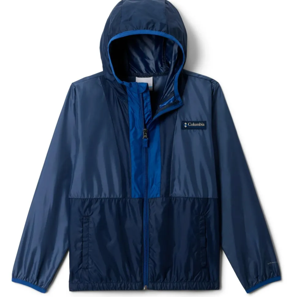 Der Kid’s Back Bowl II Hooded Windbreaker von Columbia schützt im Alltag und beim Sport vor Wind und Wetter. Dafür sorgen die wasserabweisende Behandlung der Oberfläche und das windundurchlässige Gewebe aus 100% Polyester. Die funktionelle Windjacke schützt dank hohem Kragen und Kapuze auch am Kopf und Hals bestens. Zwei praktische Fronttaschen und elastische Bündchen ergänzen das alltagstaugliche Design. Die wetterfeste Windjacke von Columbia verfügt über einen durchgehenden Frontreißverschluss und ist zusätzlich mit einem Kinnschutz am Reißverschluss versehen.